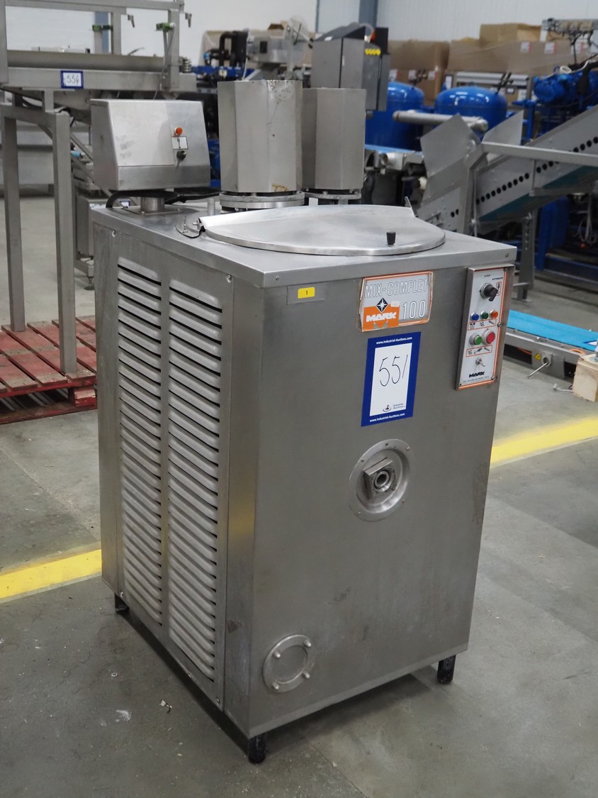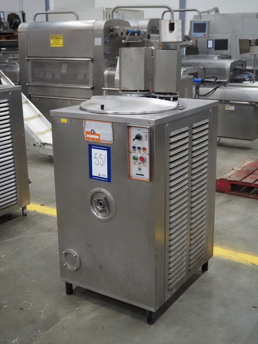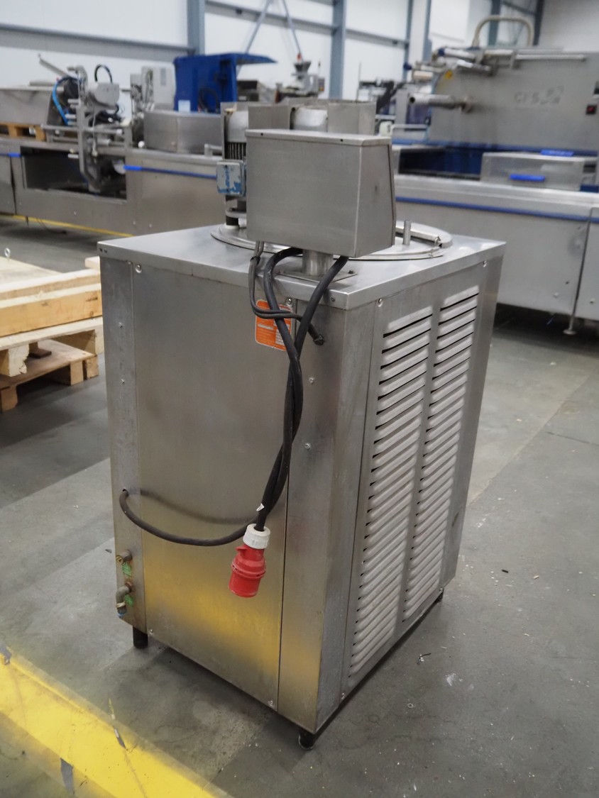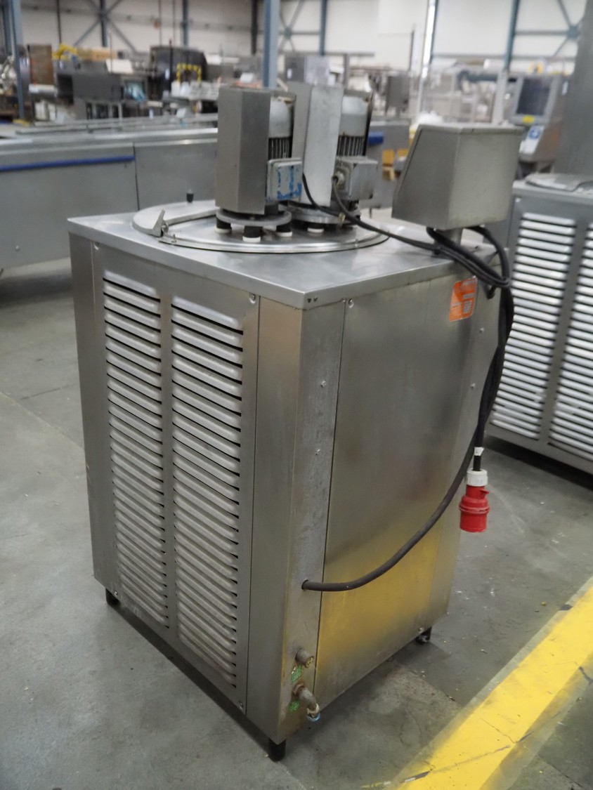 Mark S.p.A. cooled mixer, type: VC 100, serial number: 780, 380 V, 50 Hz, 13 kW, refrigerant: R 12, dimensions: 820 mm x 670 mm x 1500 mm.