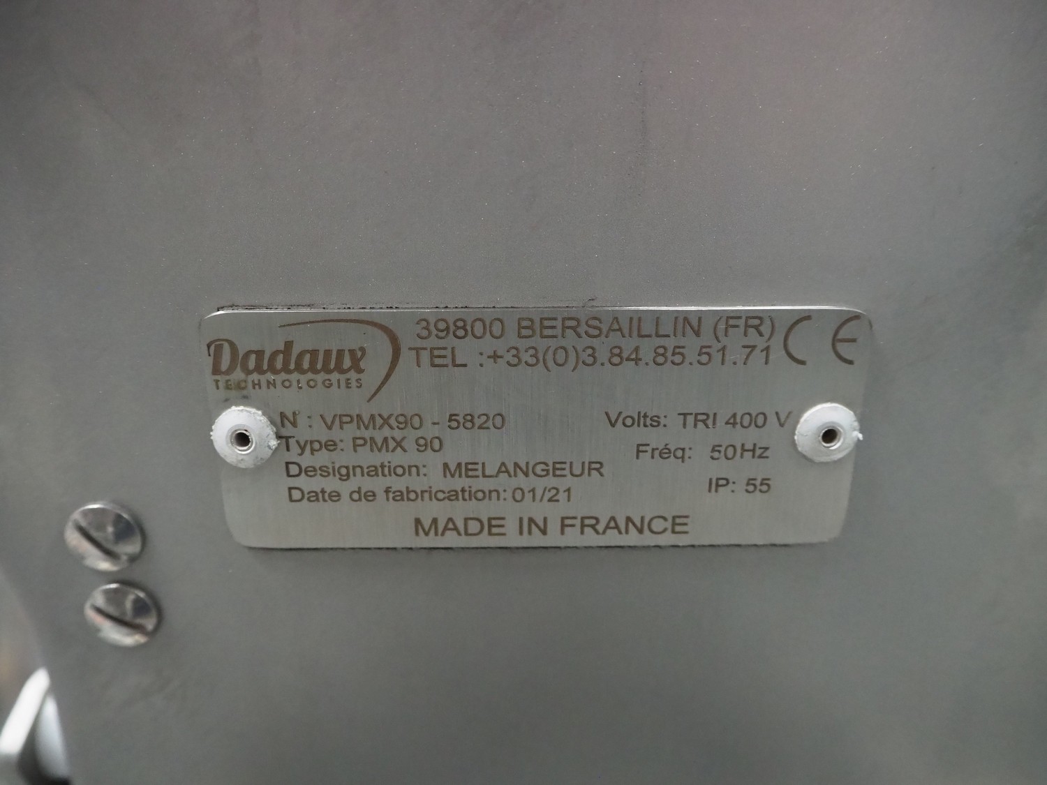 Dadaux mixer, type: PMX 90, number: VPMX90 5820, year of construction: 01/21, 400 V, 50 Hz, volume: 90 liter, dimensions: 600 mm x 900 mm x 1120 mm.