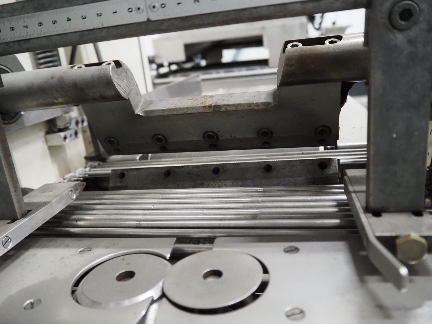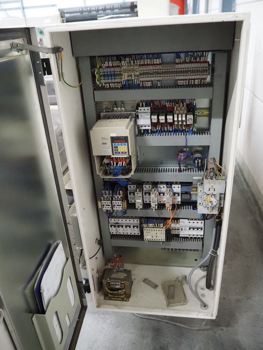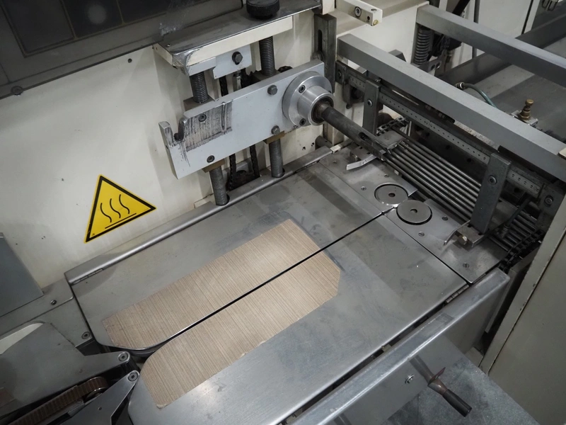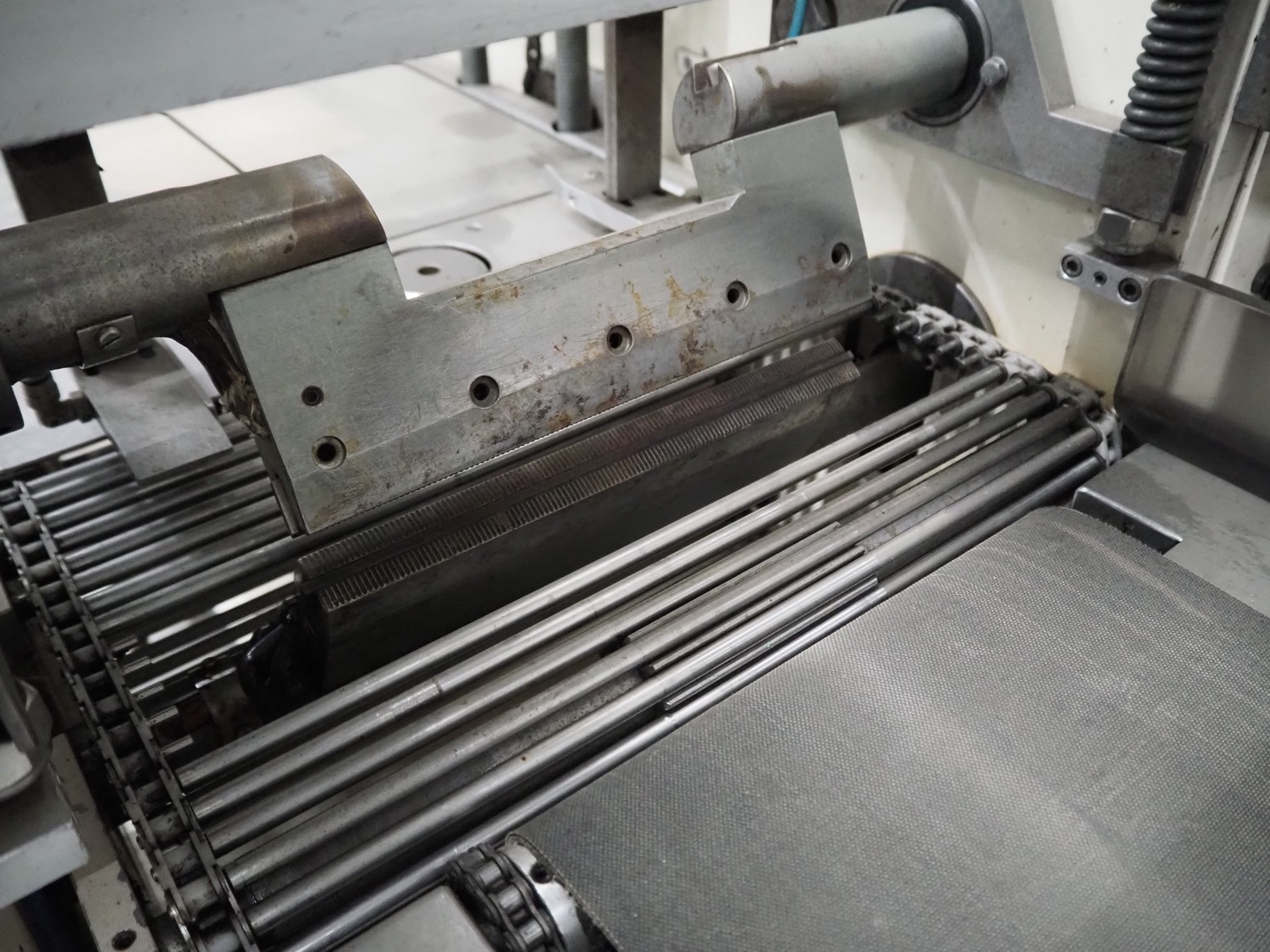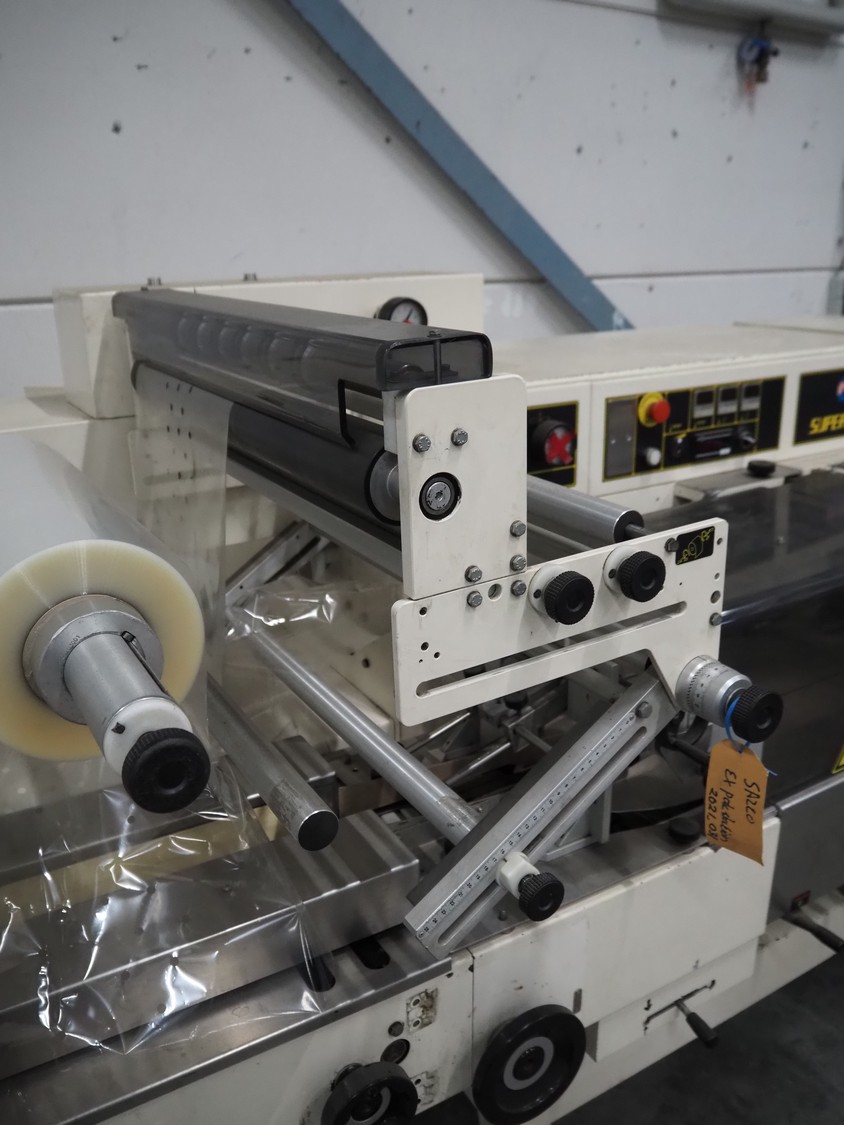 Ilapak Italia S.p.a. flowpacker, type: Superflow, serial number: 99 056, year of construction: 4/1999, 400 V, 3 Ph, 50 Hz, 10 A, 5000 W, seal width: 250 mm, plastic belt, belt width: 100 mm, film width: 400 mm and 350 mm, total dimensions: 6800 mm x 1300 mm x 1600 mm.