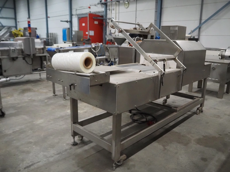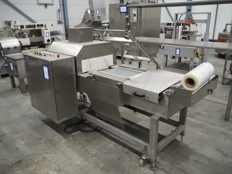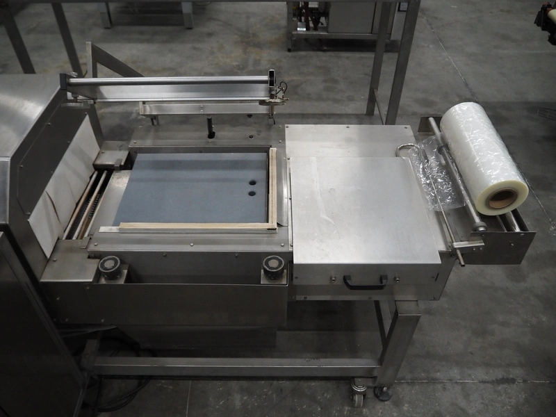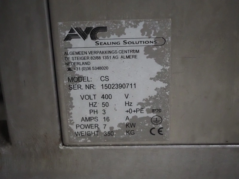 AVC mobile seal and shrink machine, model: CS, serial number: 1502390711, 400 V, 3 Ph, 50 Hz, 16 A, 7 kW, weight: 350 kg, film width: 410 mm, seal width: 515 mm and 430 mm, total dimensions: 2720 mm x 1250 mm x 1550 mm.