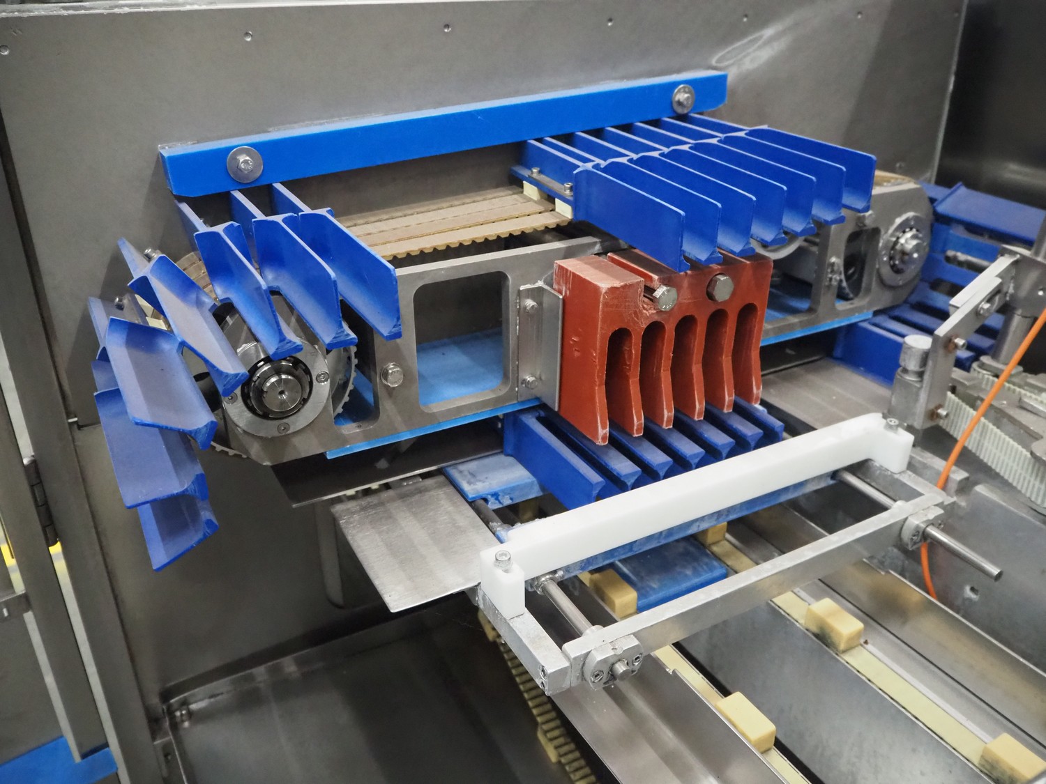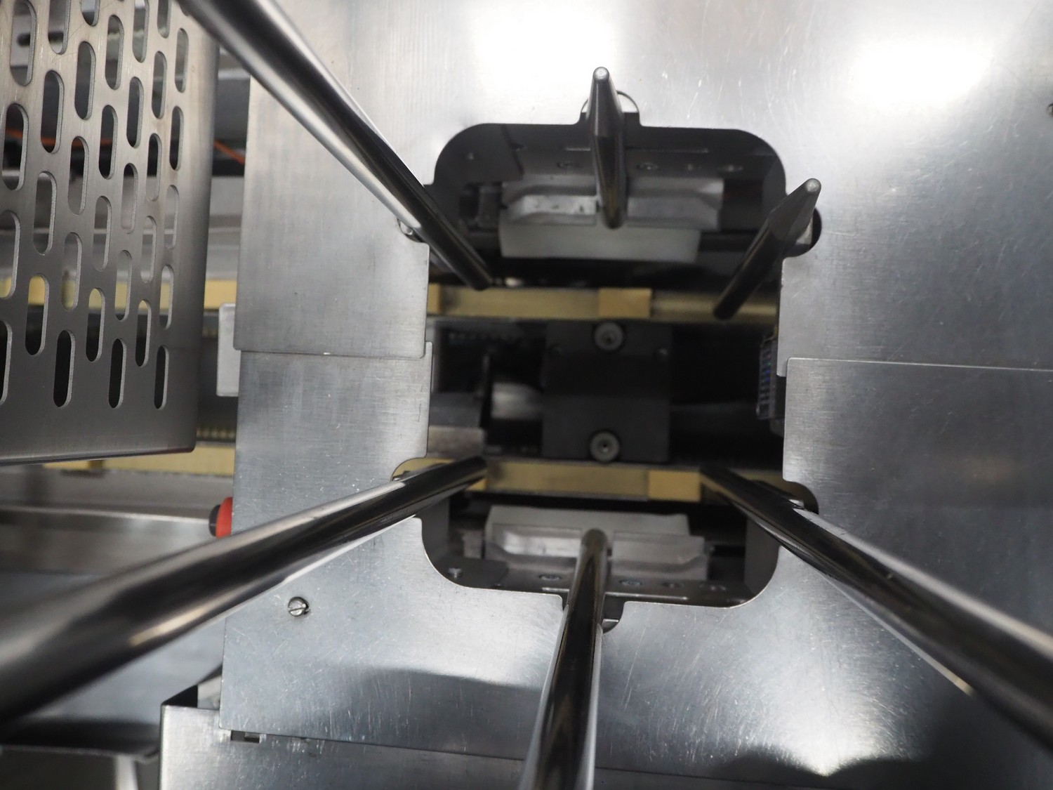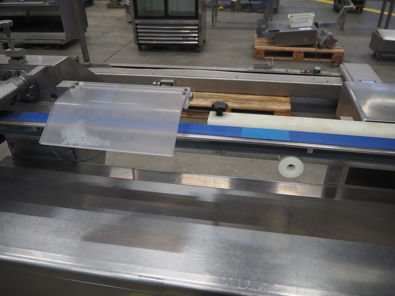 Gainsborough Craftsmen packaging machine for sausages with tray denester, machine number: 1495, year of construction: oct 2005, 415 V, weight: 1500 kg, plastic belt, belt width: 50 mm, tray dimensions: 140 mm x 190 mm, total dimensions: 3350 mm x 1050 mm x 1950 mm. Incomplete.