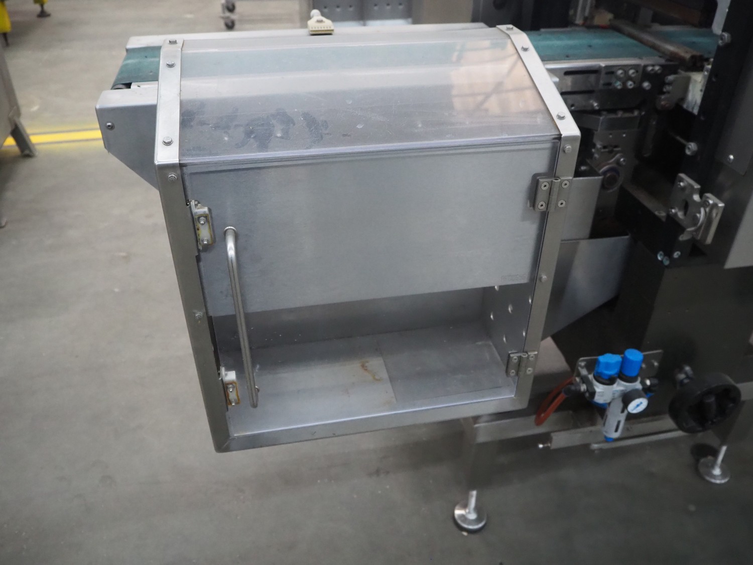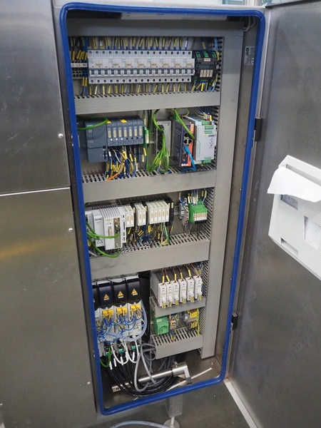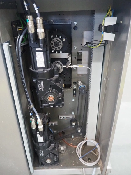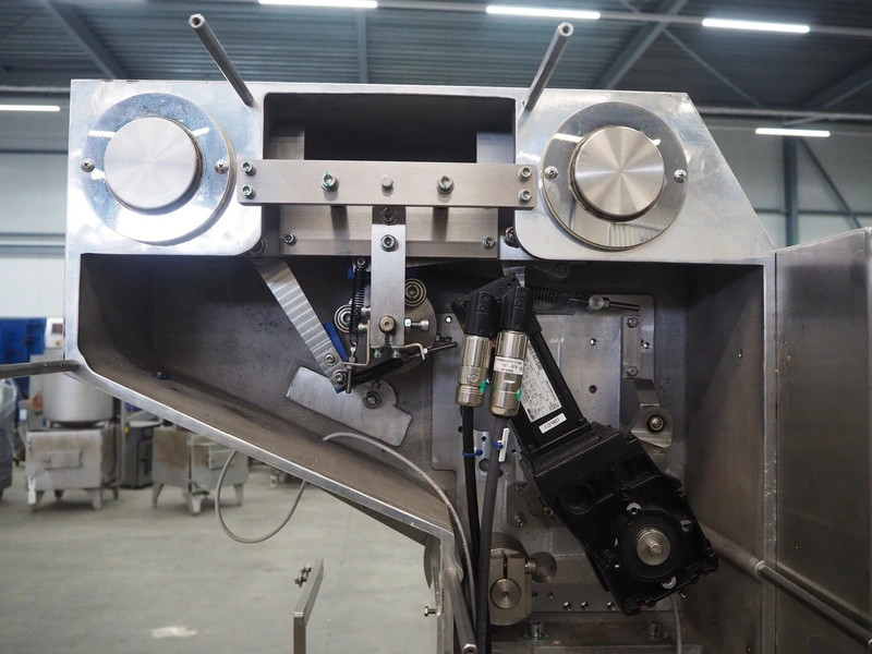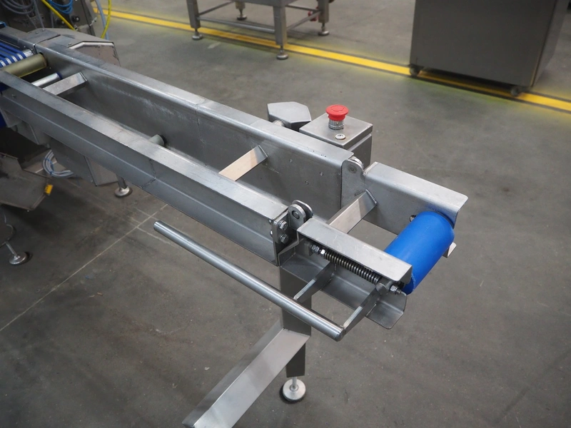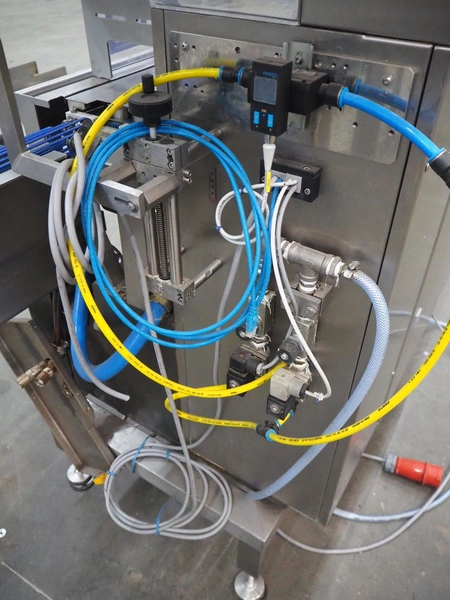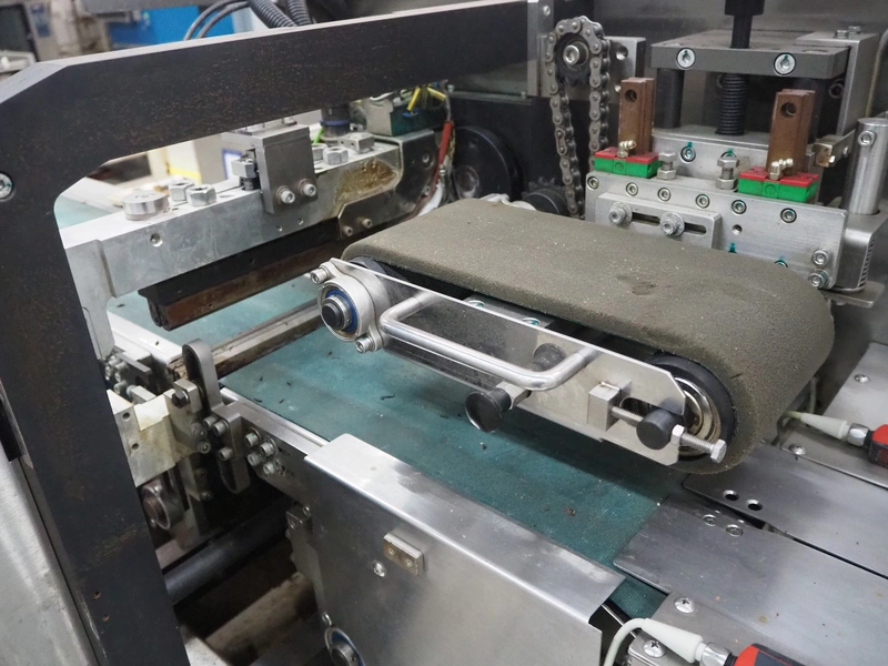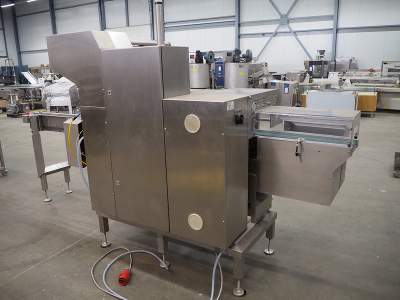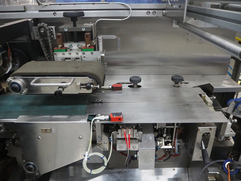 Omori Europe B.V. flowpacker, type: S-5015EU-BX, serial number: X18228, year of construction: 2020, 400 V, 3 Ph, 50 Hz, 10 kW, weight: 1500 kg, seal length: 250 mm, plastic outfeed belt, belt width: 180 mm, total dimensions: 3900 mm x 1100 mm x 1850 mm.