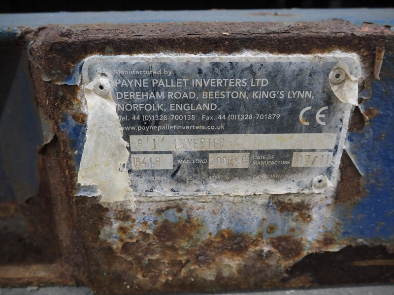 Payne pallet inverters pallet destacker, type: 6 I INVERTER, number: I64IR, year of construction: 07/11, capacity: 2000 kg, dimensions platform: 1300 mm x 1150 mm, total dimensions: 2050 mm x 1800 mm x 2270 mm.
