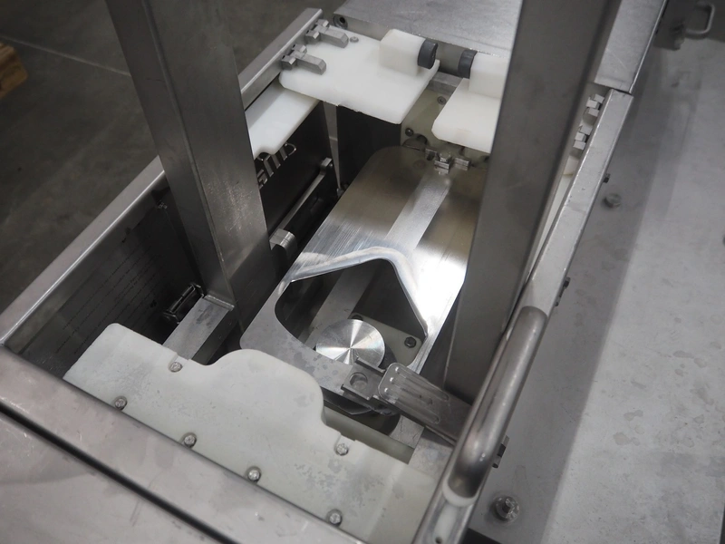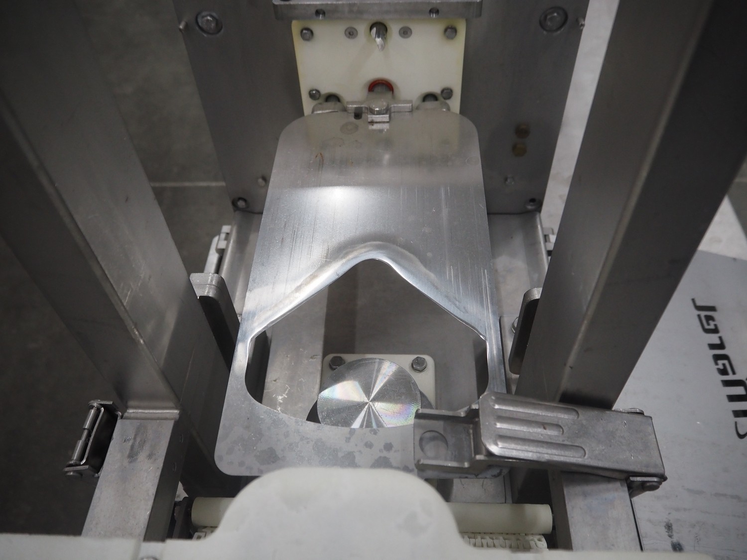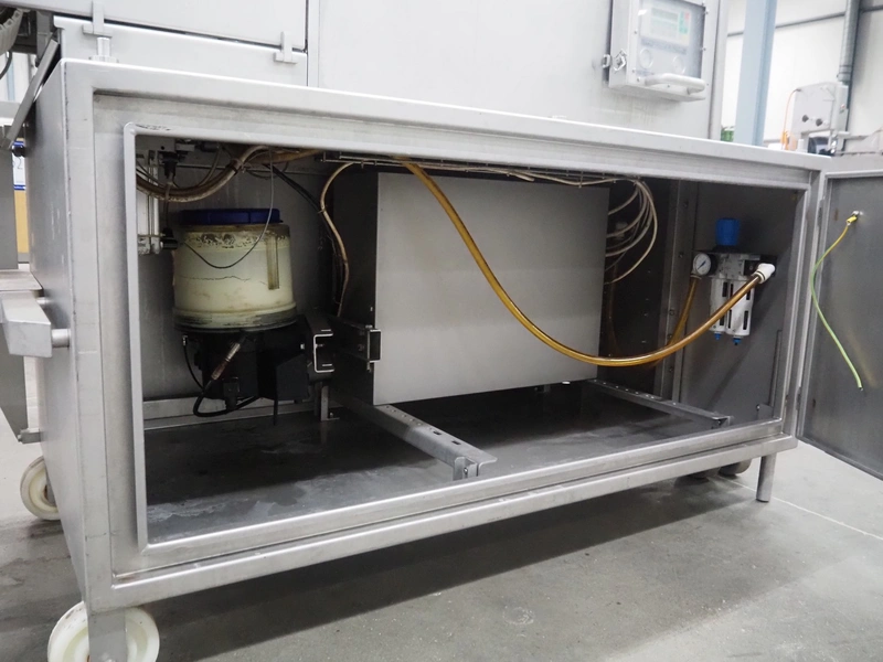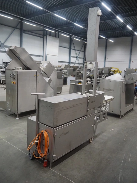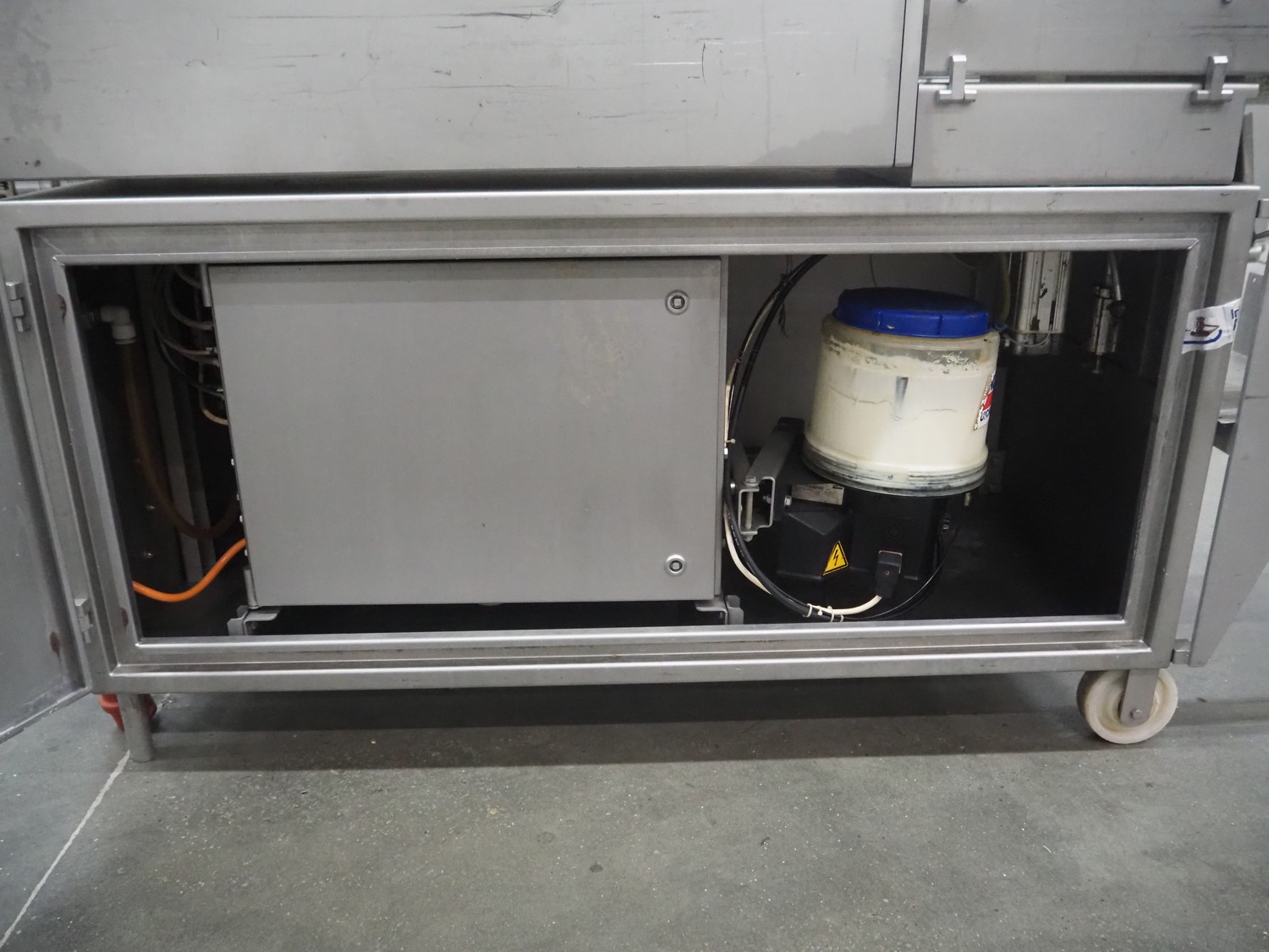 Marel mobile portioning machine, type: Portio 4003S, serial number: 080S-0071, year of construction: 2006, 400 V, 3 Ph, 50/60 Hz, 1.2/2.2 A, weight: 500 kg, plastic mesh belt, belt width: 250 mm, total dimensions: 2700 mm x 800 mm x 3000 mm.