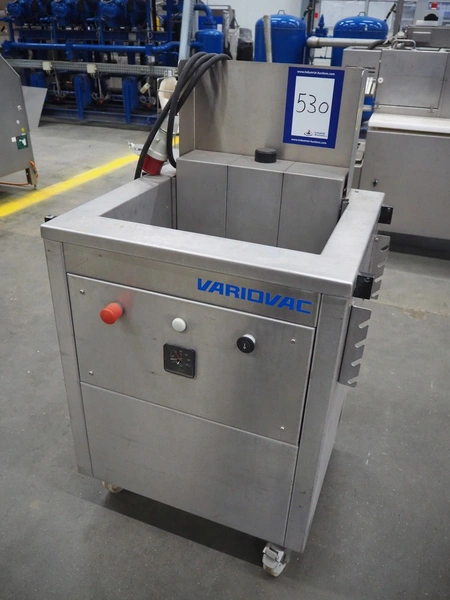 Variovac mobile dip tank, type: TB 70, machine number: 2109, year of construction: 2000, 230/400 V, 50 Hz, 9 kW, dimensions inside: 500 mm x 355 mm, total dimensions: 730 mm x 650 mm x 1180 mm.