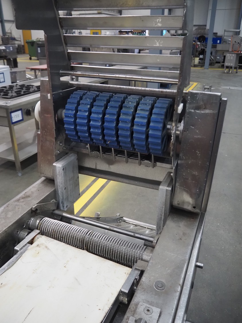 Weber Maschinenbau GmbH mobile skinning and derinding machine, type: ASB 800/1, number: 452, 380 V, 50 Hz, 0.85 kW, working width: 380 mm, total dimensions: 670 mm x 850 mm x 1200 mm. Incomplete.
