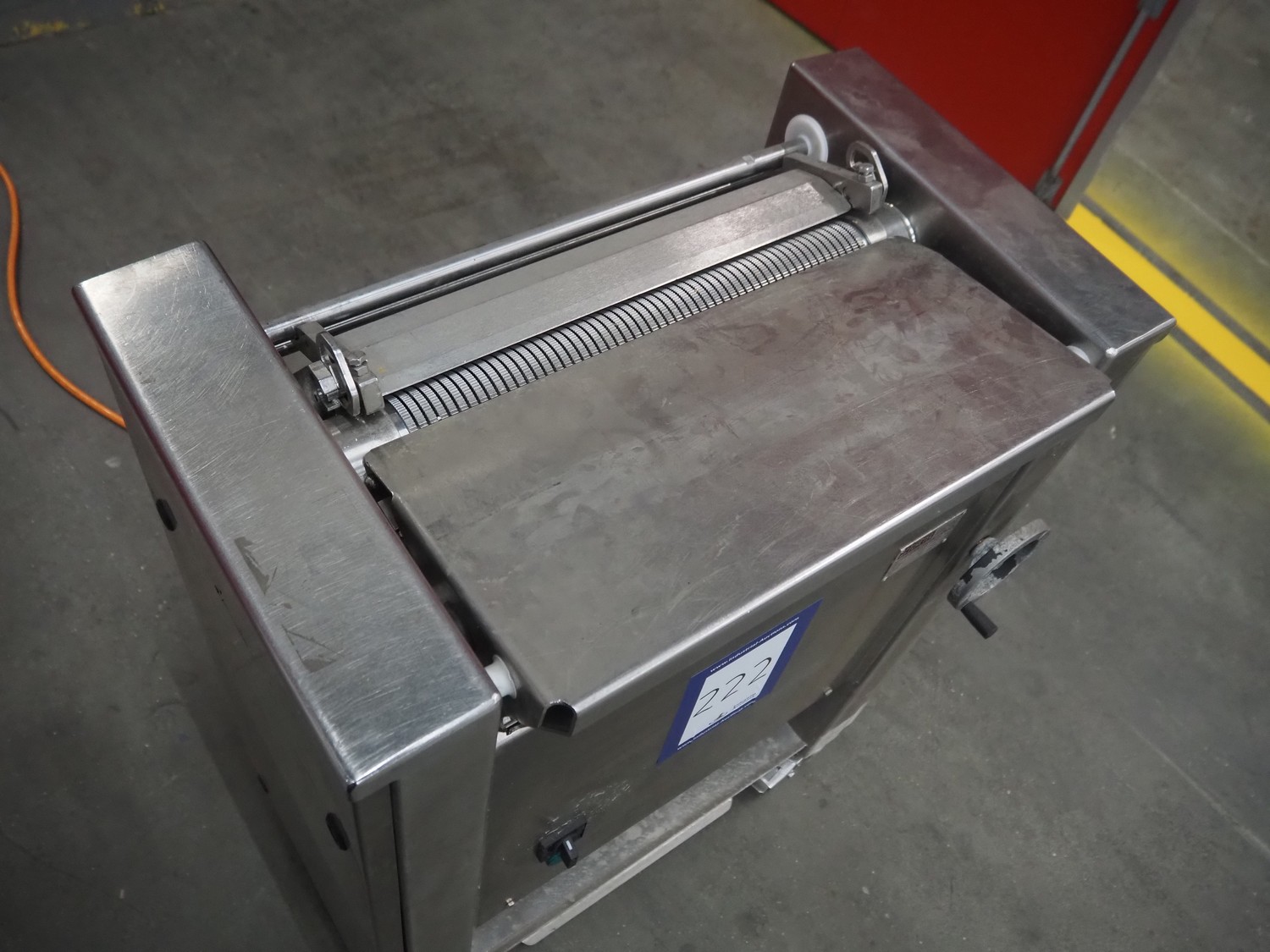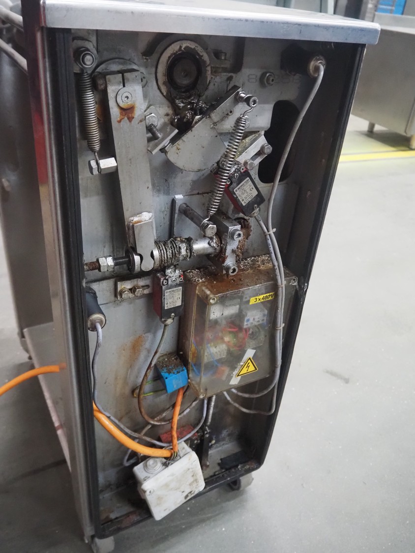 Cretel mobile skinning machine, type: SB46, serial number: 2041188, year of construction: 2004, 230-400 V, 3 Ph, 50 Hz, 3.8-2.2 A, 0.75 kW, working width: 435 mm, total dimensions: 750 mm x 500 mm x 990 mm.