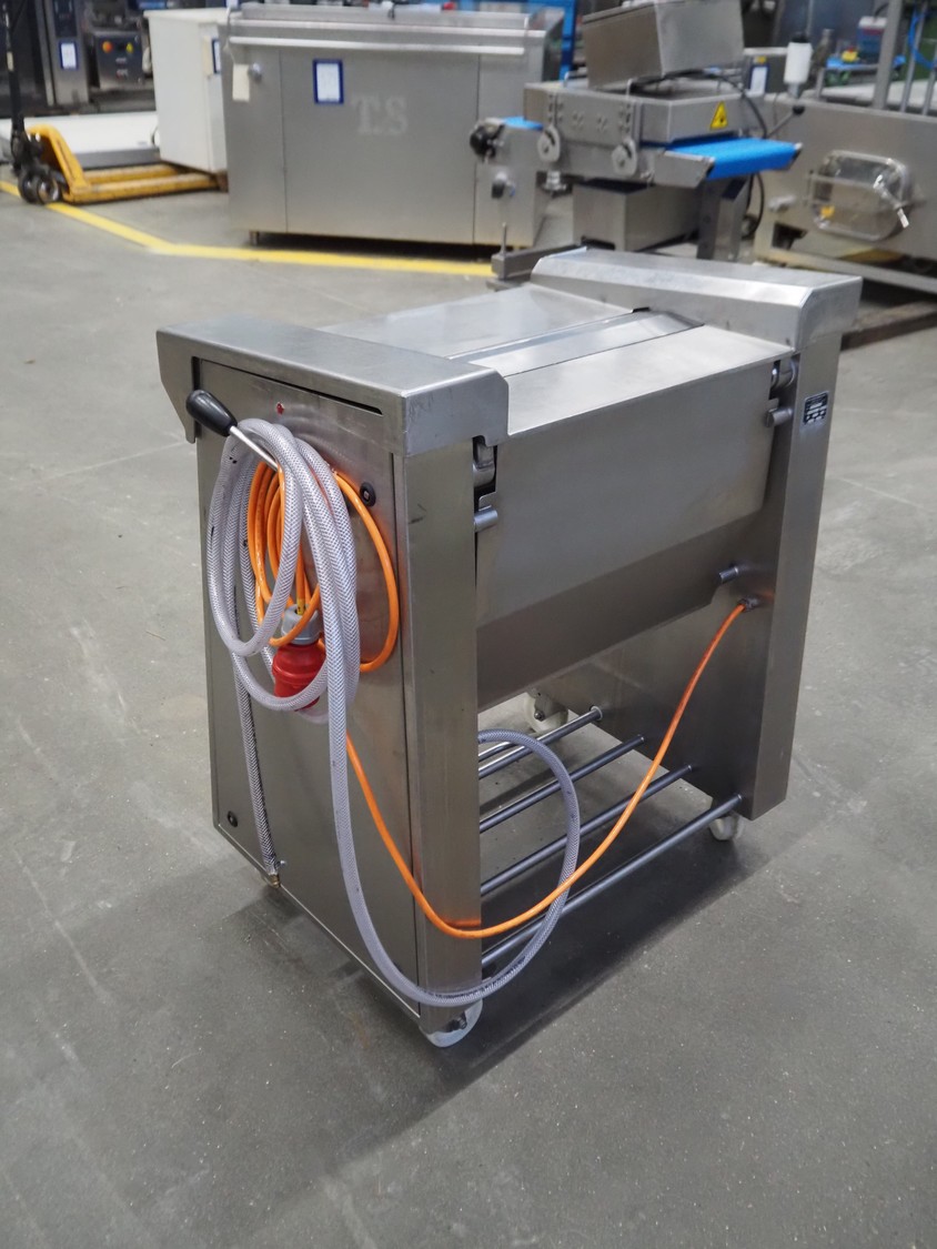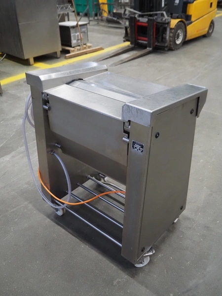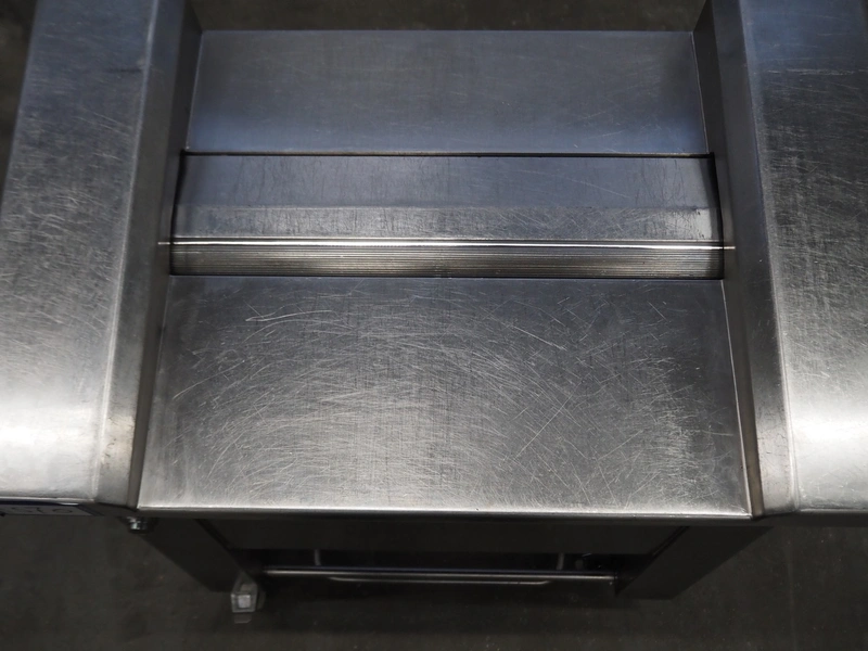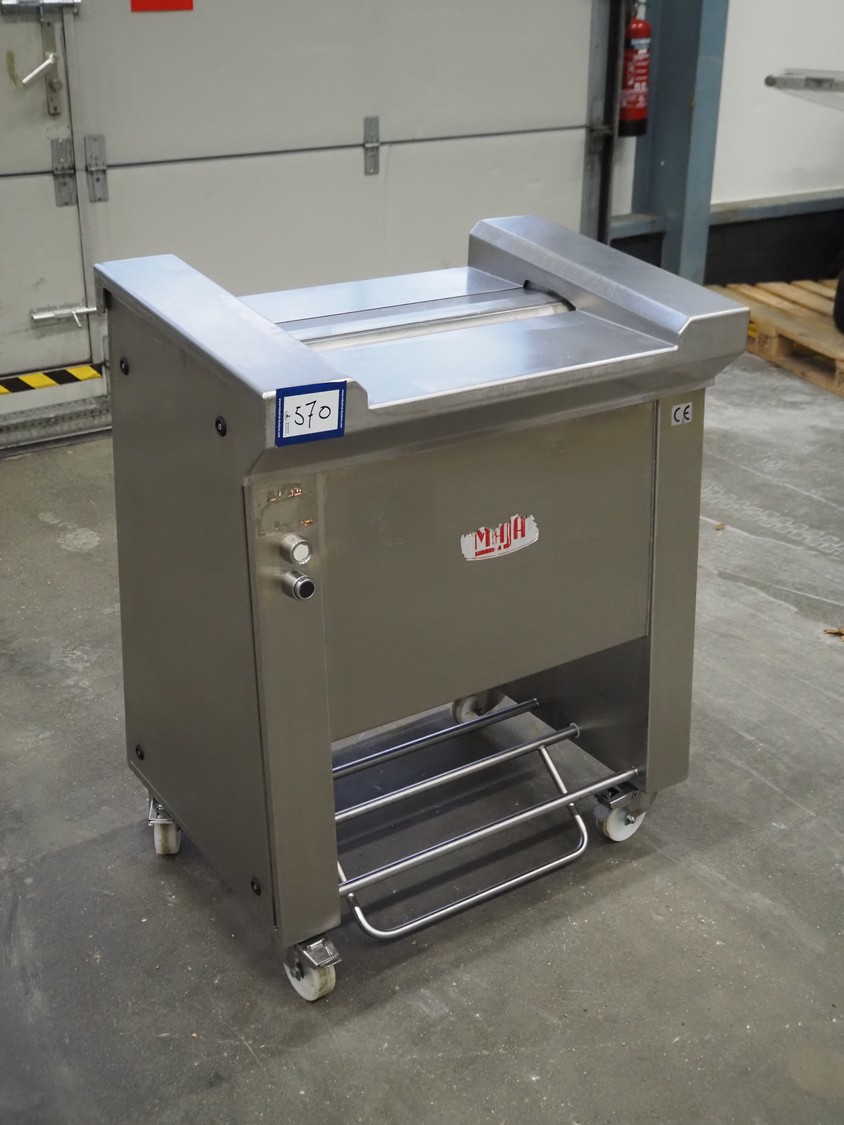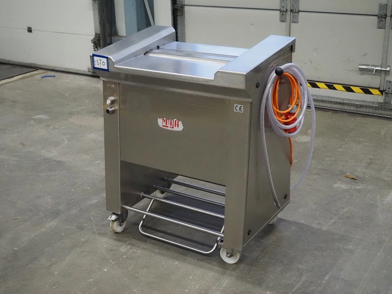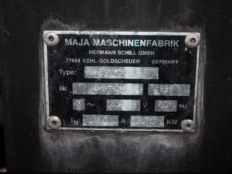 Maja mobile skinning machine, type: EVM 3006, number: 41726, year of construction: 1999, 400 V, 3 Ph, 50 Hz, 2 A, 0.75 kW, working width: 550 mm, foot controll, total dimensions: 900 mm x 550 mm x 1000 mm.