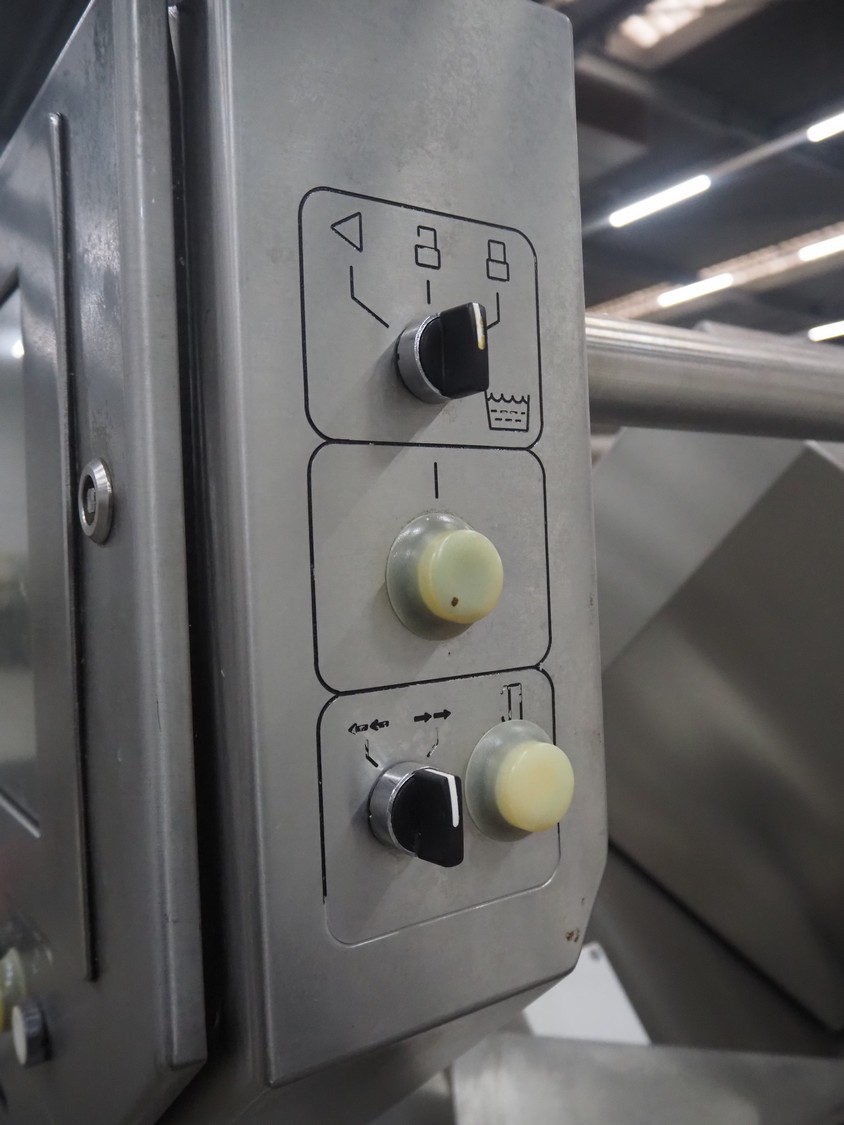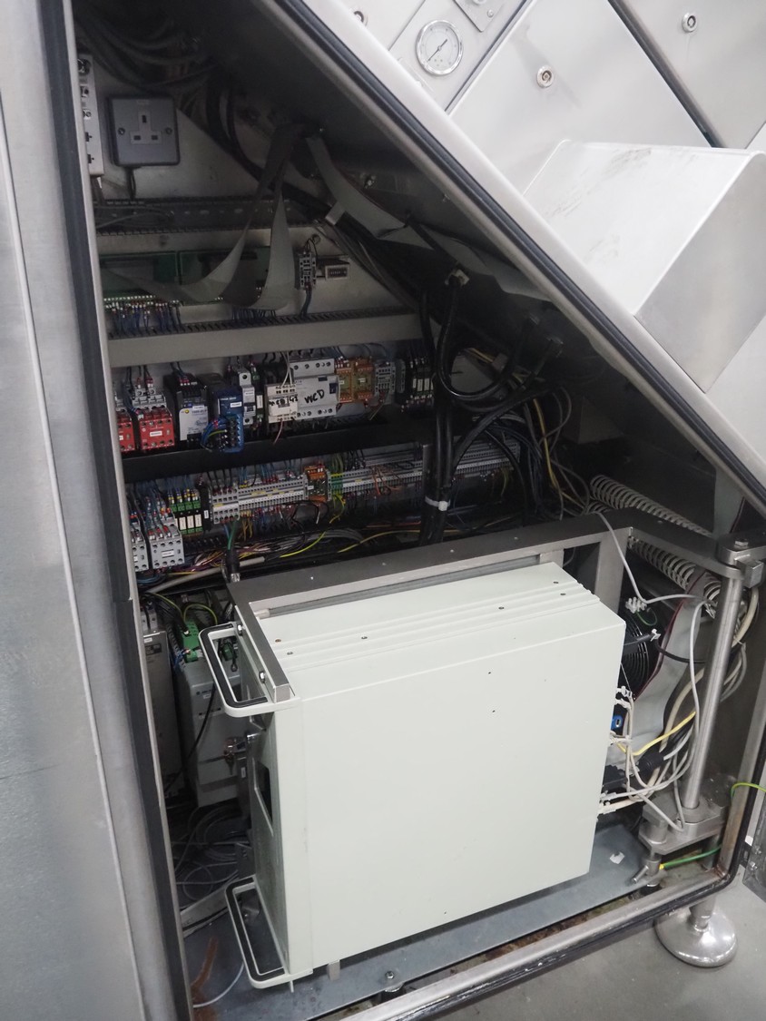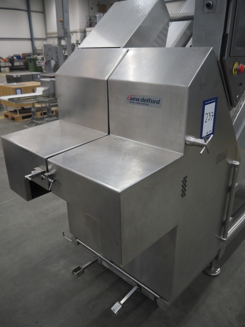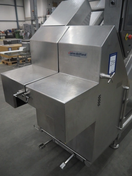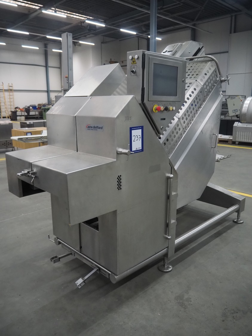 AEW Delford slicer, model: PolySlicer 3000V, serial number: 1890055, 400 V, 3 Ph, 50 Hz, 40 A, weight: 1100 kg, dimensions: 2800 mm x 1400 mm x 2350 mm. Without outfeed belt.