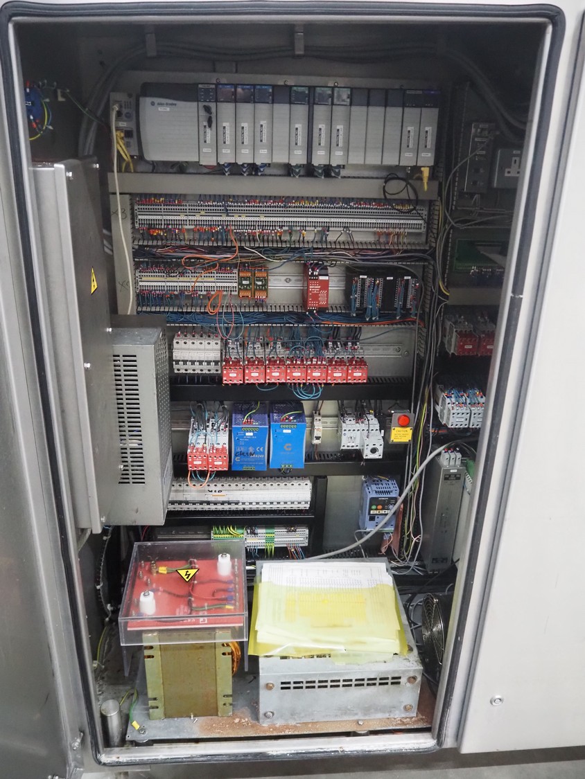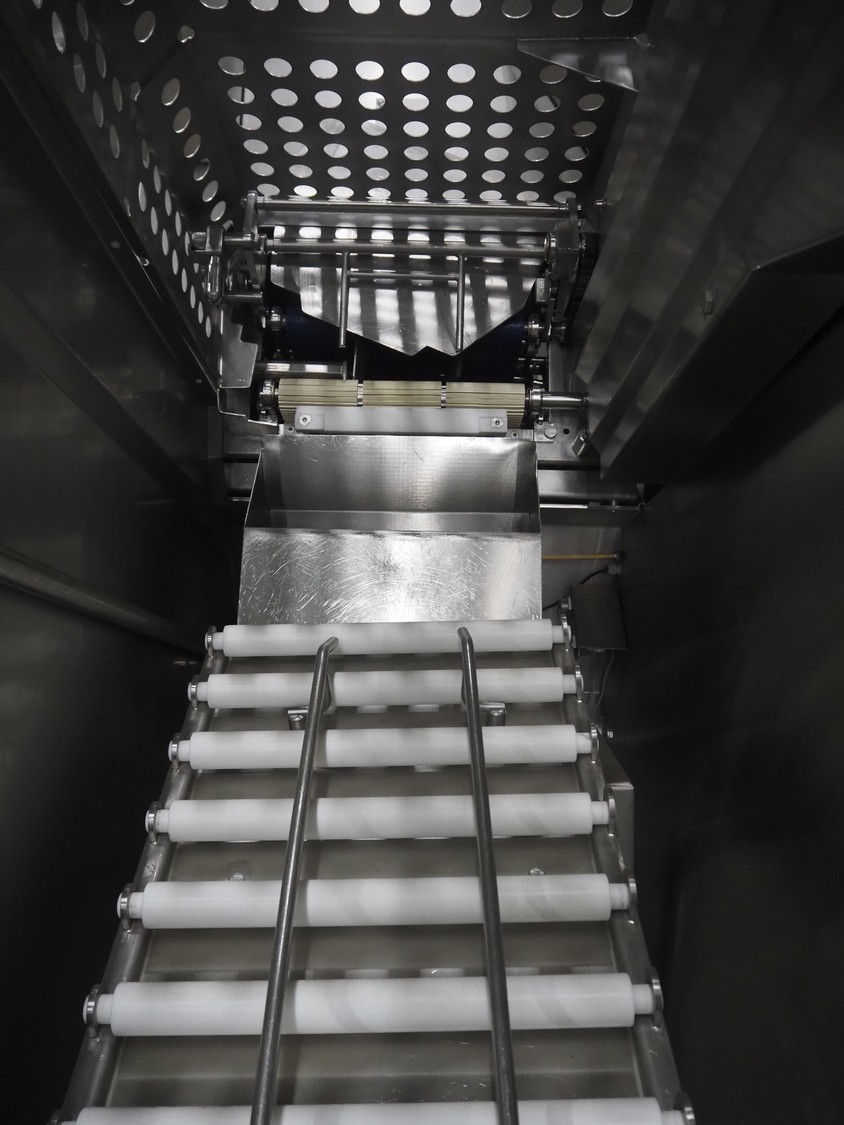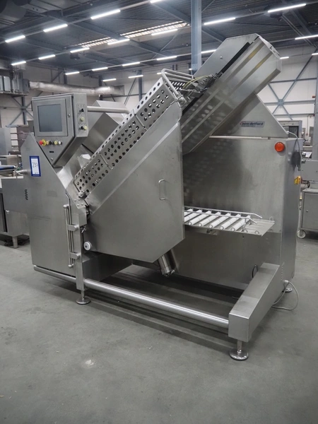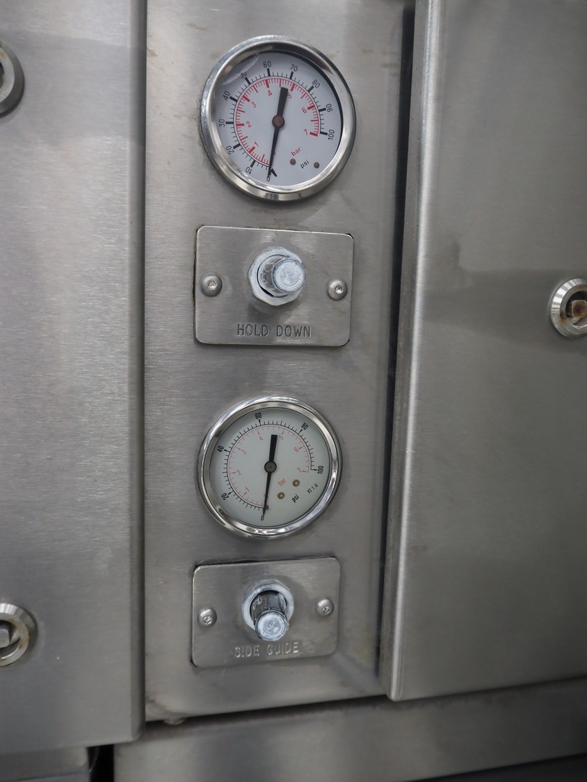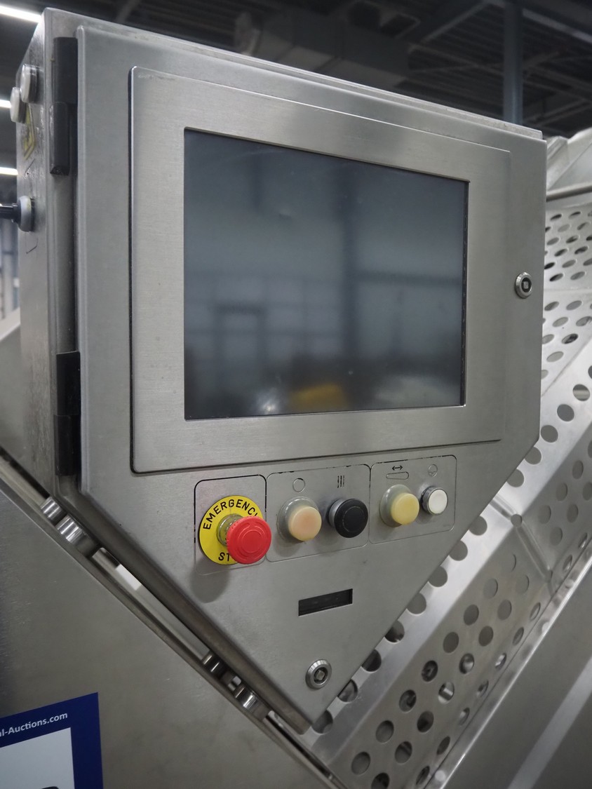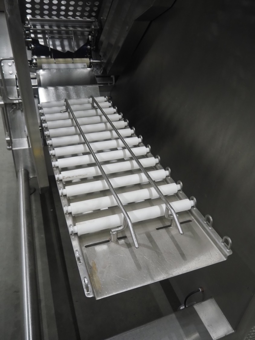 AEW Delford slicer, model: PolySlicer 3000V, serial number: 1890055, 400 V, 3 Ph, 50 Hz, 40 A, weight: 1100 kg, dimensions: 2800 mm x 1400 mm x 2350 mm. Without outfeed belt.