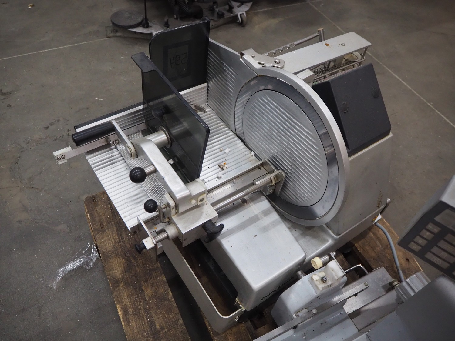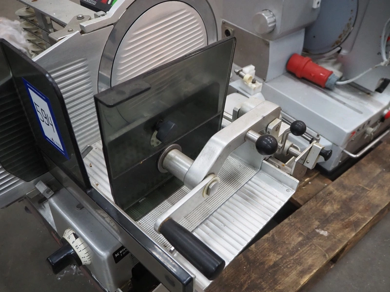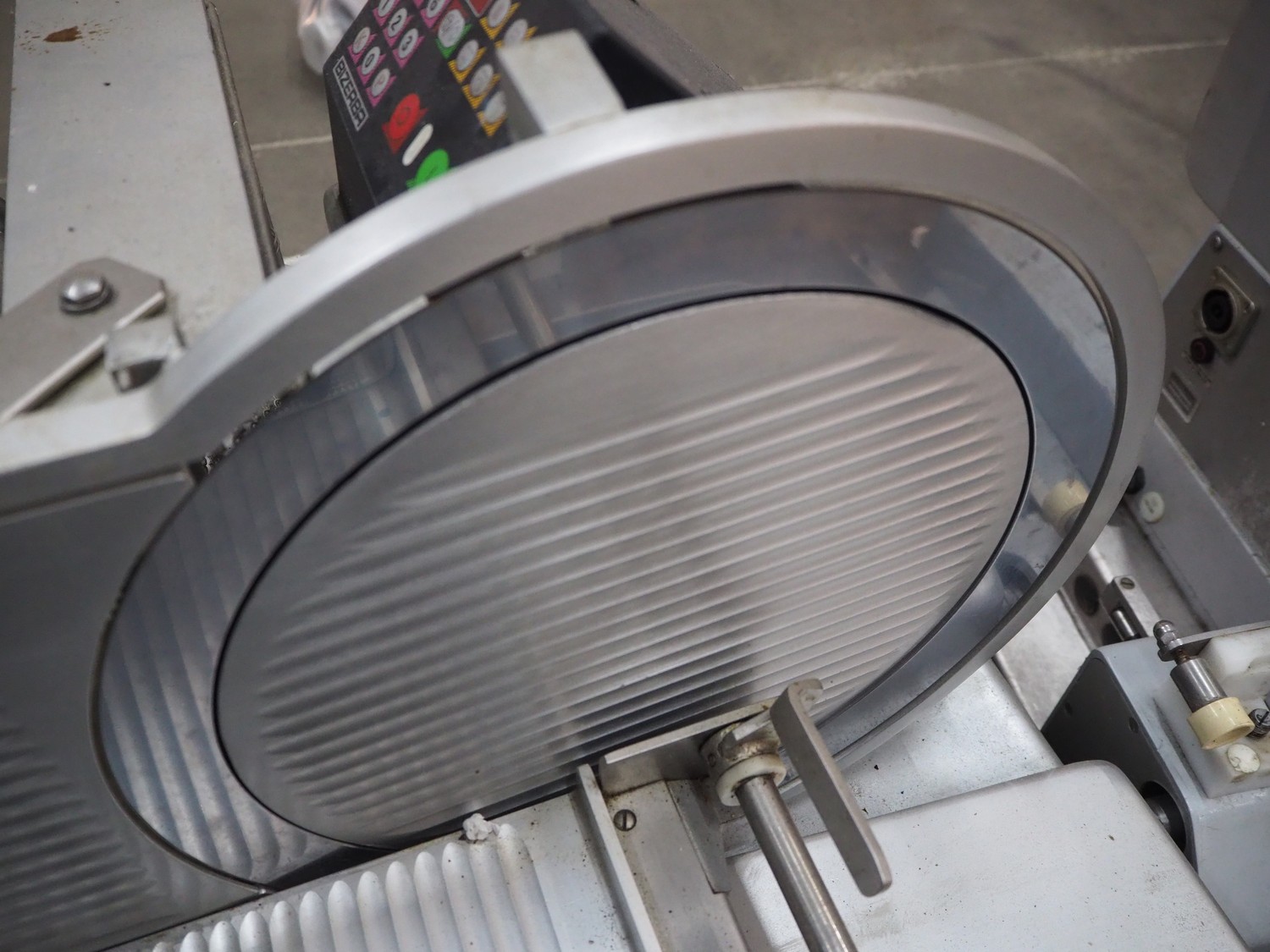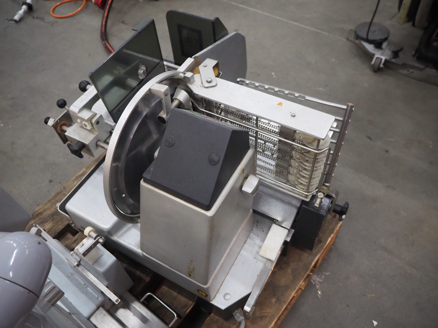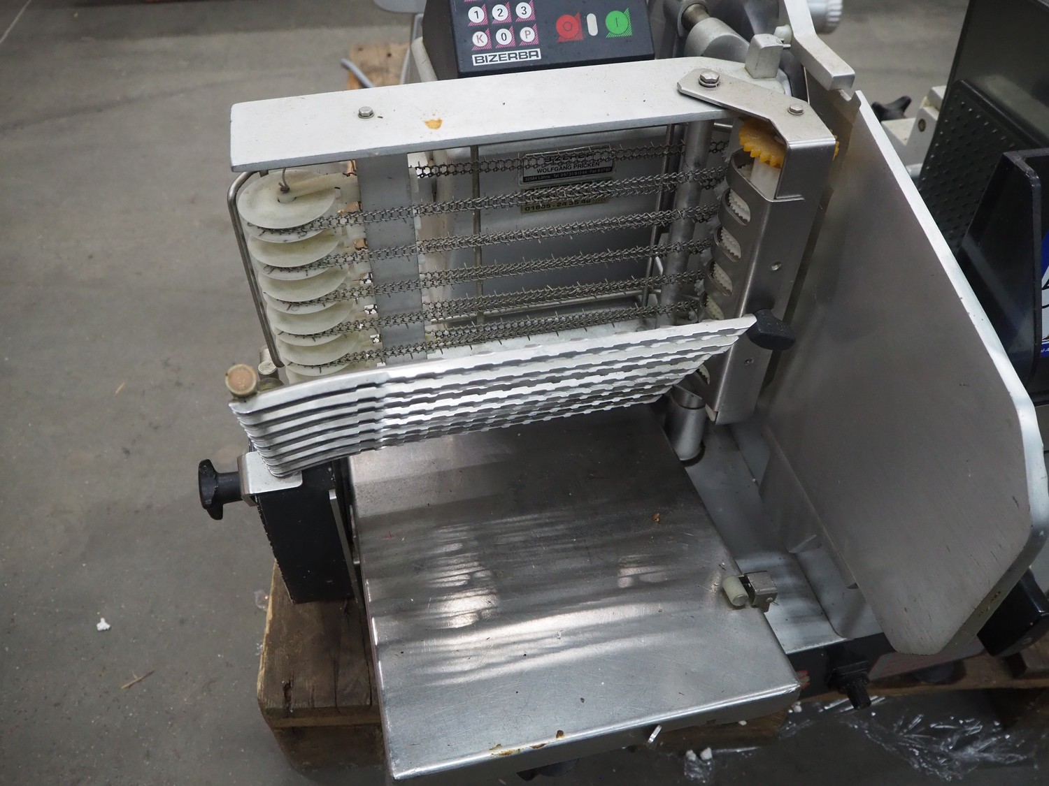 Bizerba slicer, type: VS 8 D, number: 1540464, year of construction: 1997, 230/400 V, 3 Ph, 50 Hz, 2.1/1.5 A, dimensions: 860 mm x 600 mm x 460 mm. Including knife sharpener.