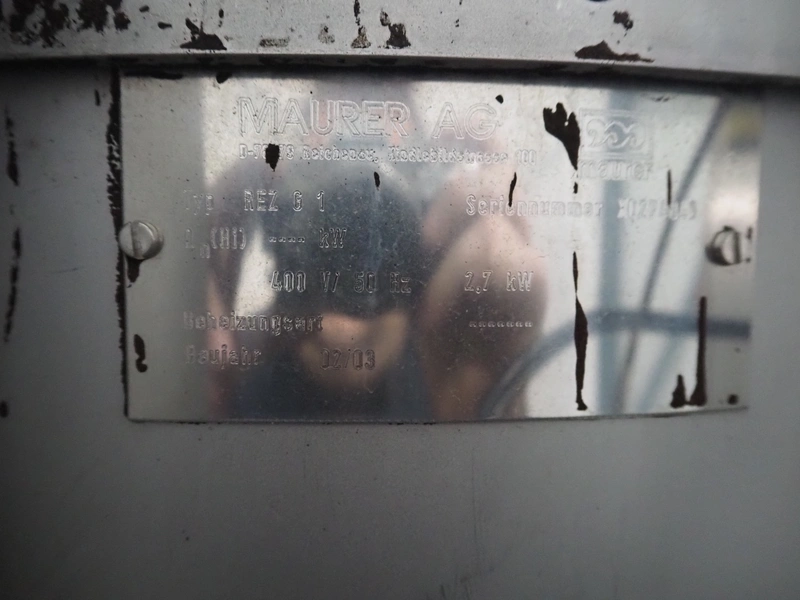 Maurer AG smoke generator for wood chips, type: REZ G 1, serial number: X0274849, year of construction: 02/03, 400 V, 50 Hz, 2.7 kW, dimensions: 1150 mm x 870 mm x 2200 mm.
