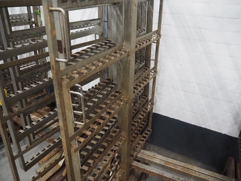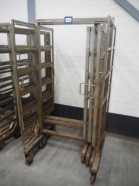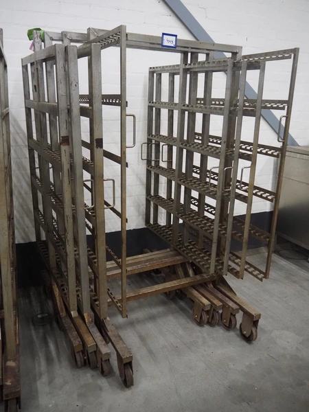 4 s/s smoke trolleys, 6 floors, dimensions each floor: 1010 mm x 1000 mm, total dimensions: (4x) 1020 mm x 1000 mm x 1980 mm.