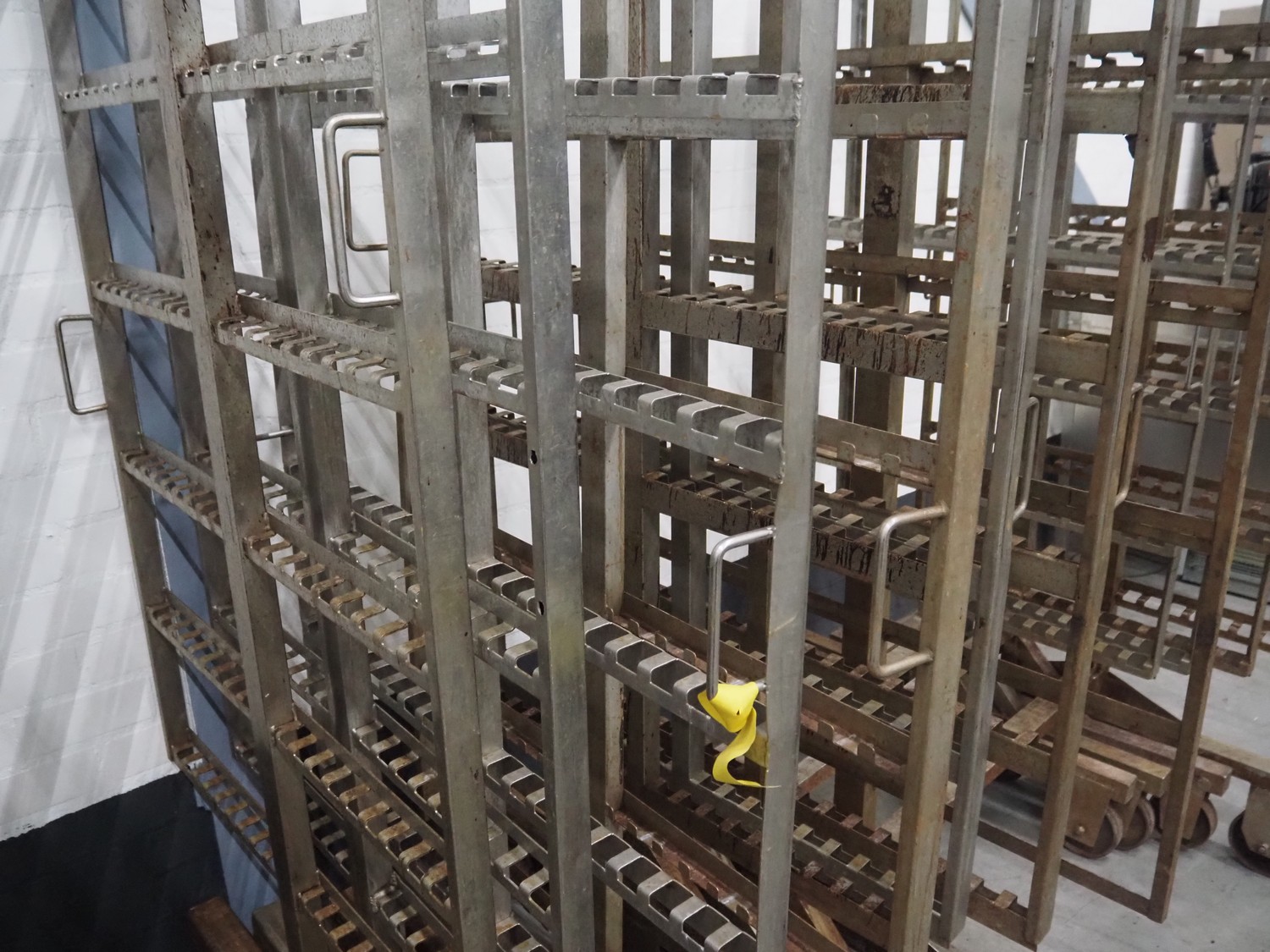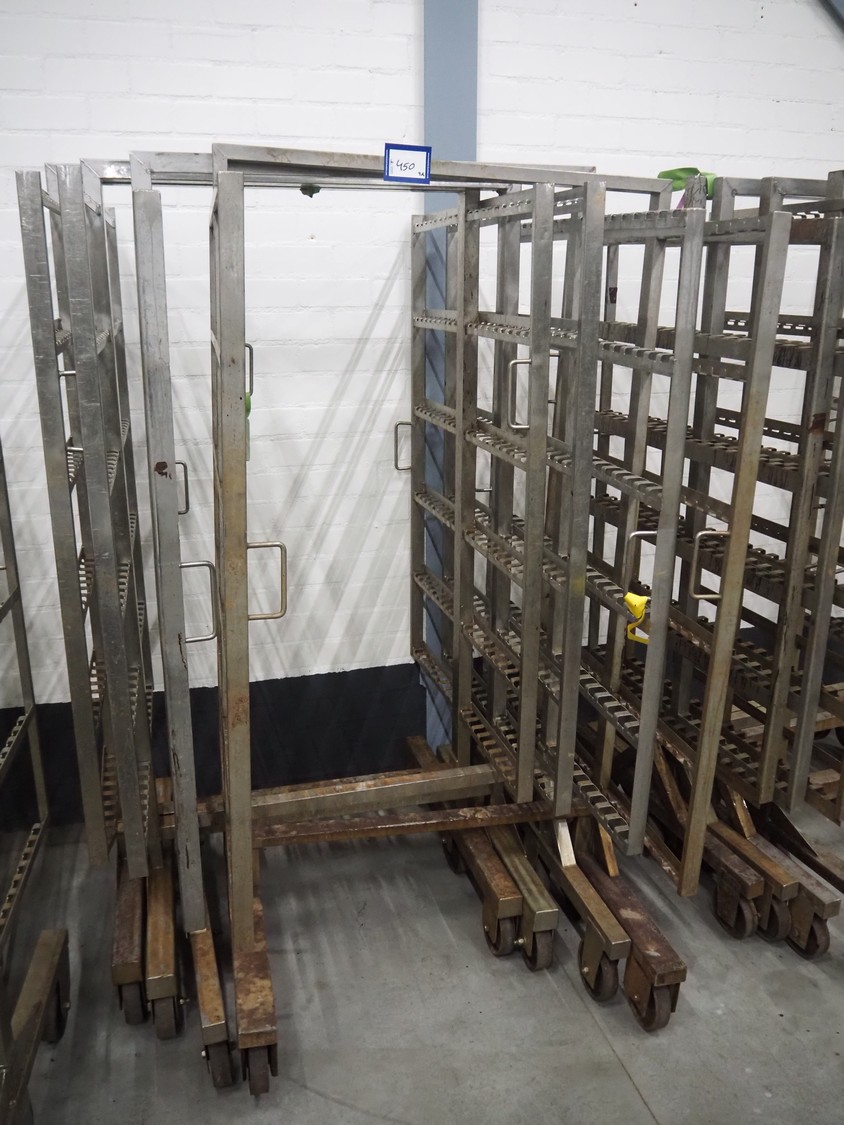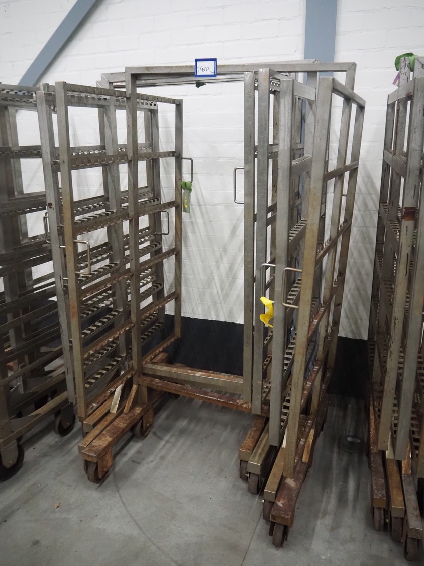 4 s/s smoke trolleys, 6 floors, dimensions each floor: 1010 mm x 1000 mm, total dimensions: (4x) 1020 mm x 1000 mm x 1980 mm.