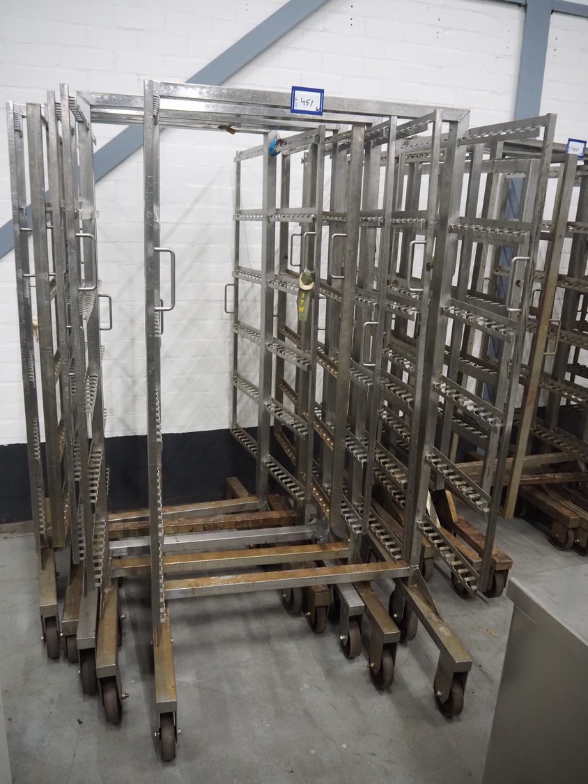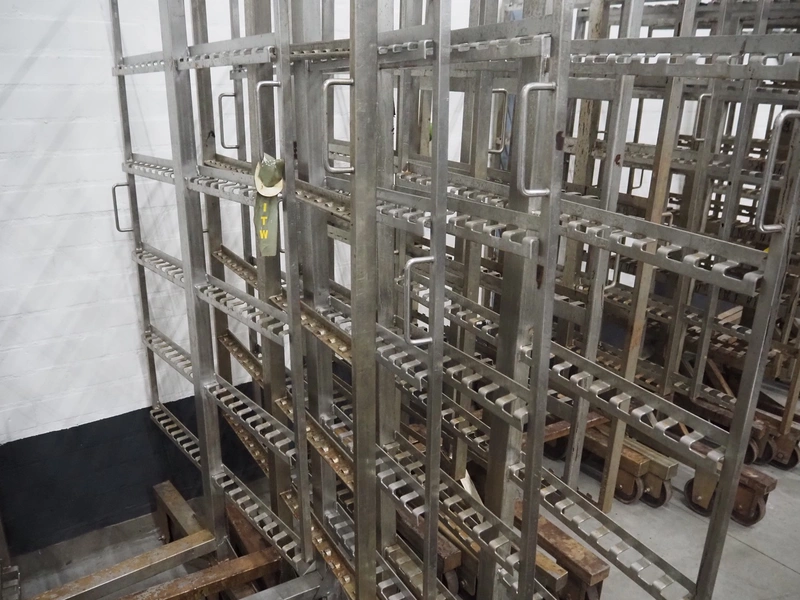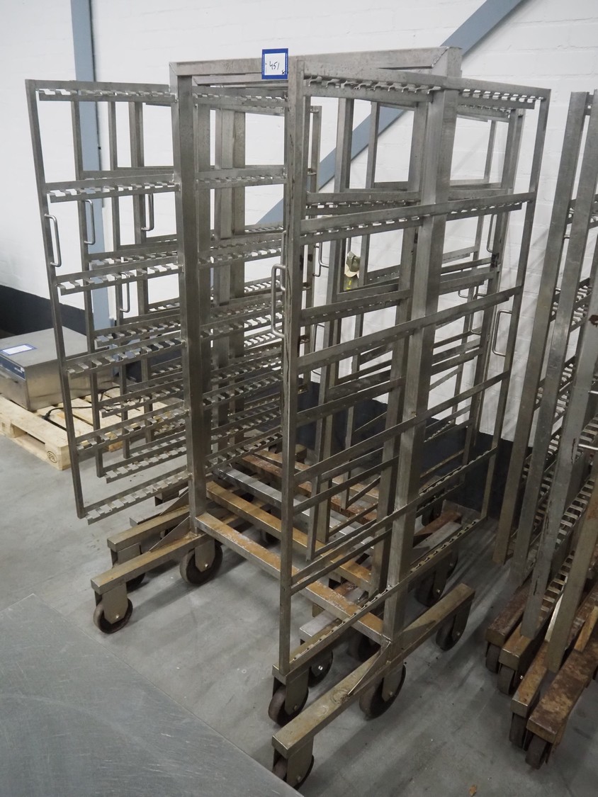 5 s/s smoke trolleys, 6 floors, dimensions each floor: 1010 mm x 1000 mm, total dimensions: (5x) 1020 mm x 1000 mm x 1980 mm.