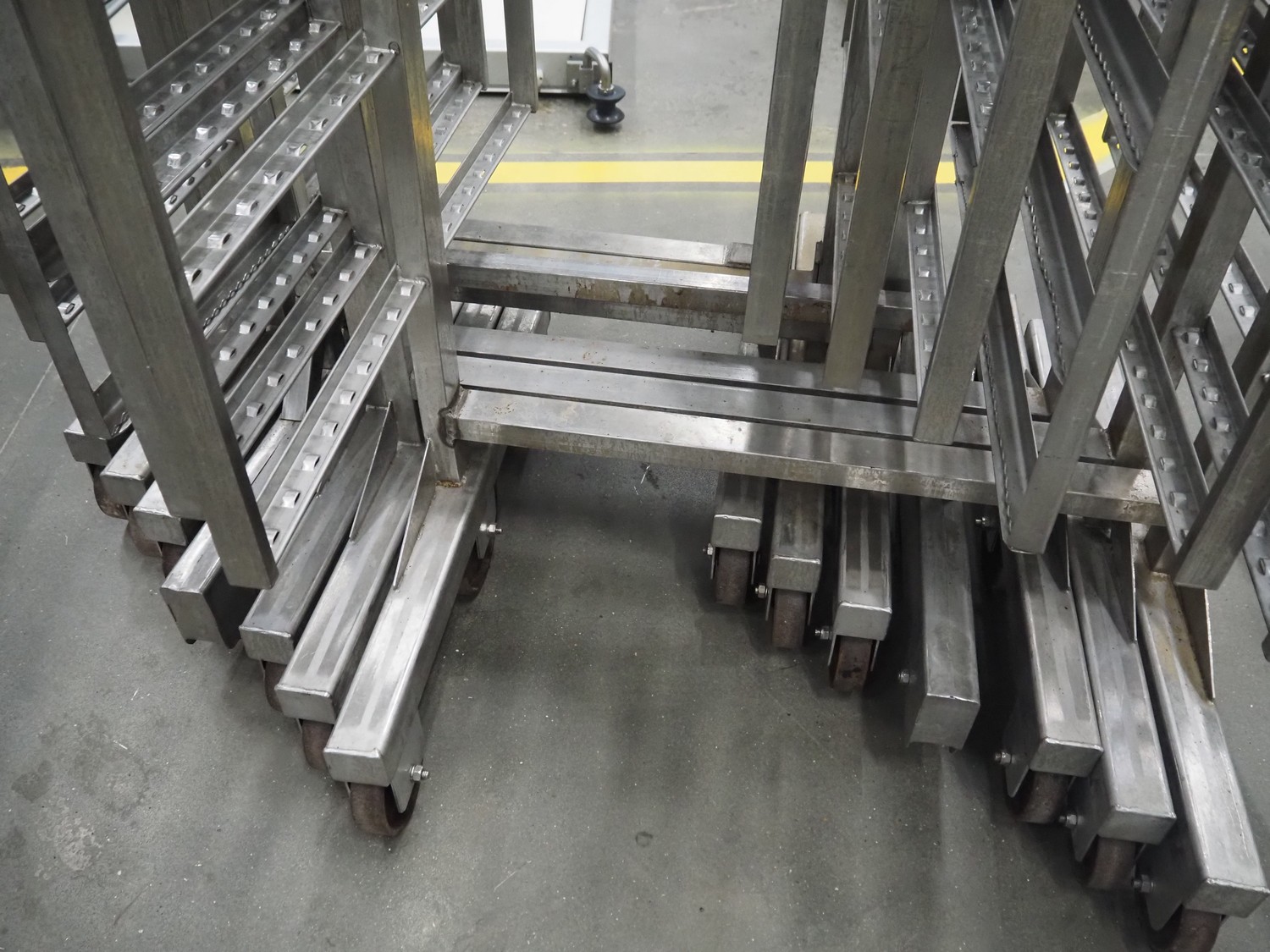 7 s/s smoke trolleys, 6 floors, dimensions each floor: 1010 mm x 1000 mm, total dimensions: (7x) 1020 mm x 1000 mm x 1980 mm.