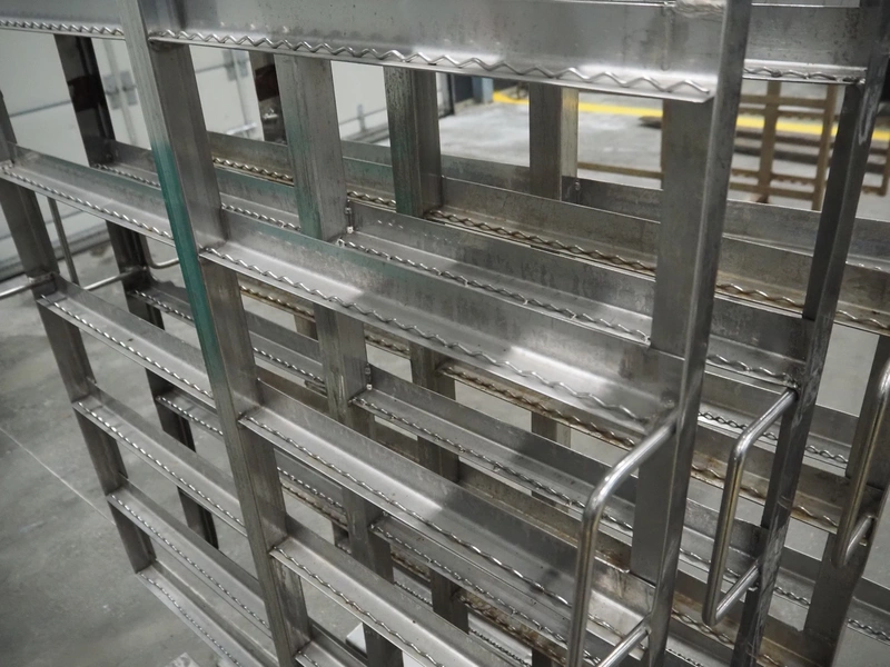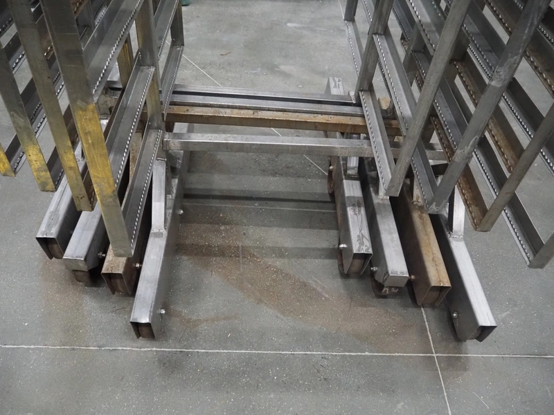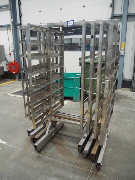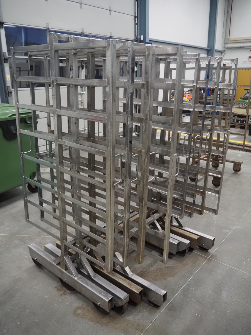 4 s/s smoke trolleys, 8 floors, dimensions each floor: 1010 mm x 1000 mm, total dimensions: (4x) 1020 mm x 1000 mm x 1960 mm.