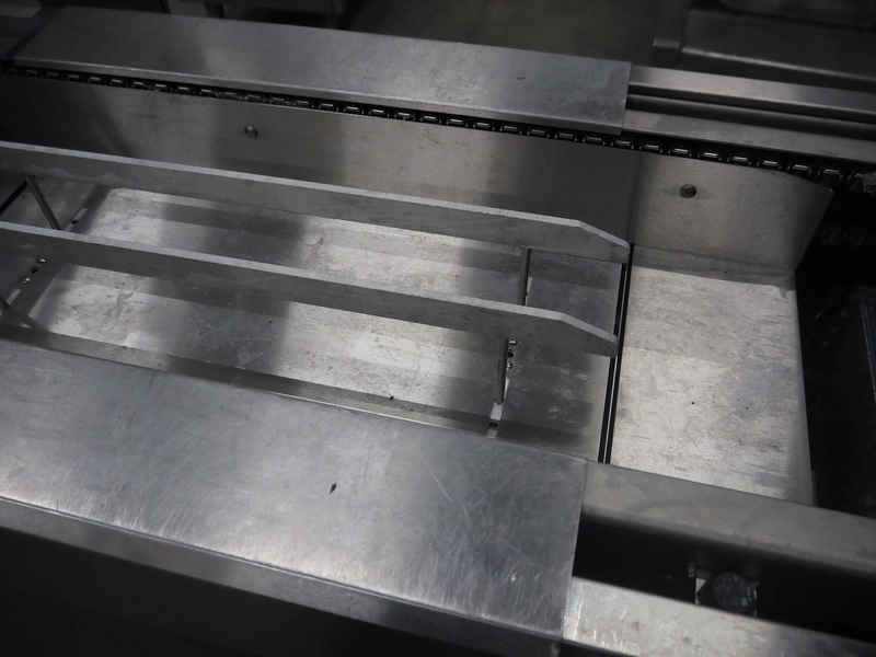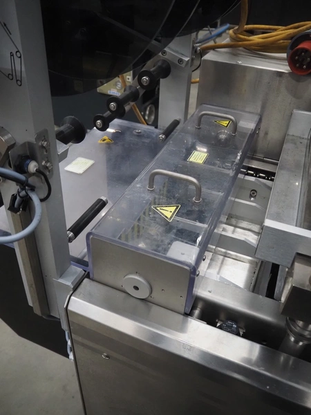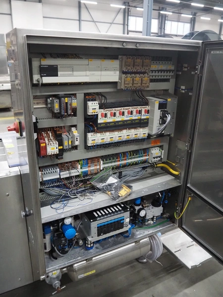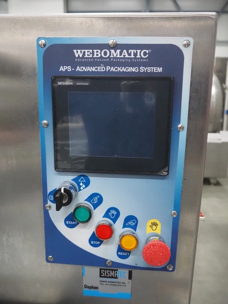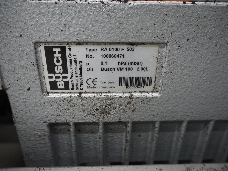 Webomatic thermoformer, type: APS ML 3300, machine number: F 6515SI562, 400 V, 3 Ph, 50 Hz, 17.5 A, 11.5 kW, film width: 410 mm, dimensions dye: (6x) 120 mm x 110 mm, plastic outfeed belt, belt width: 355 mm, 2 Busch vacuum pumps, type: RA 0100 F 503 / RA 0021 B 3Z3 APXX, capacity: 100 m³ per hour / 21 m³ per hour, total dimensions: 3500 mm x 1200 mm x 1620 mm. Including 3 crates with parts.