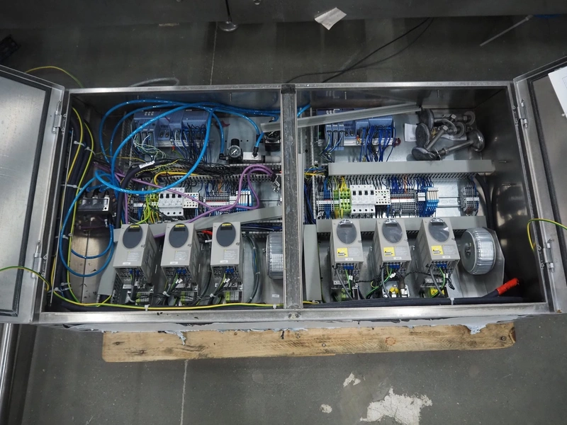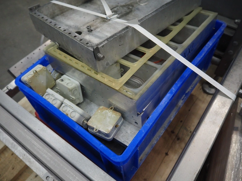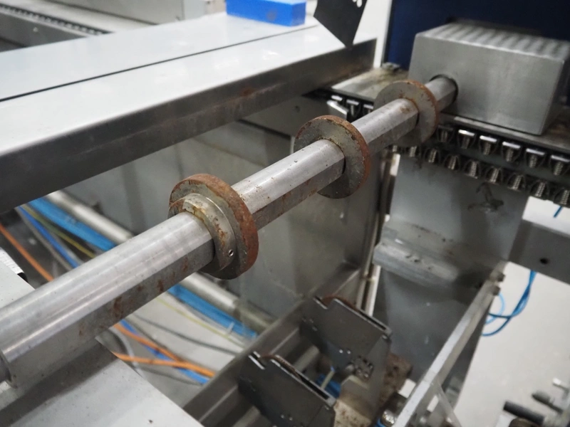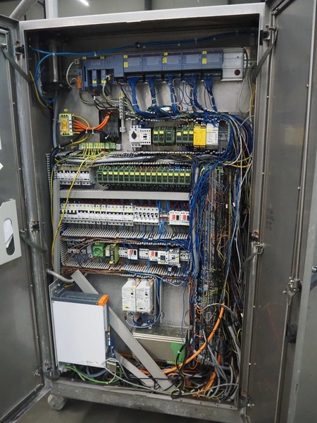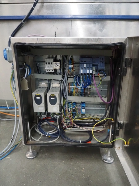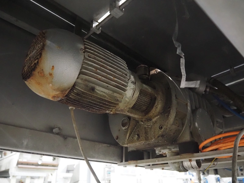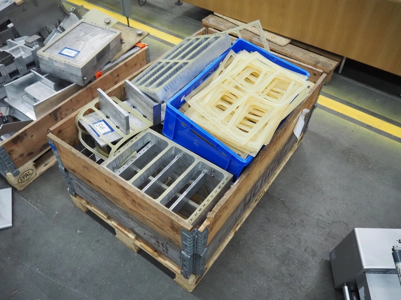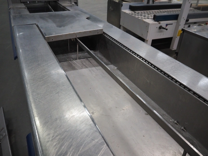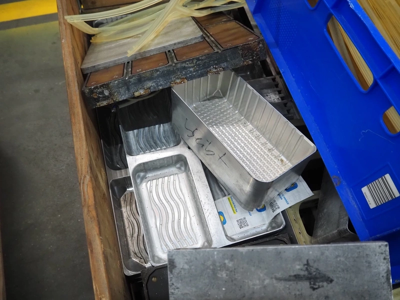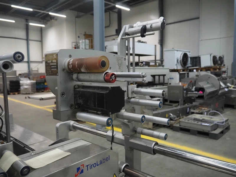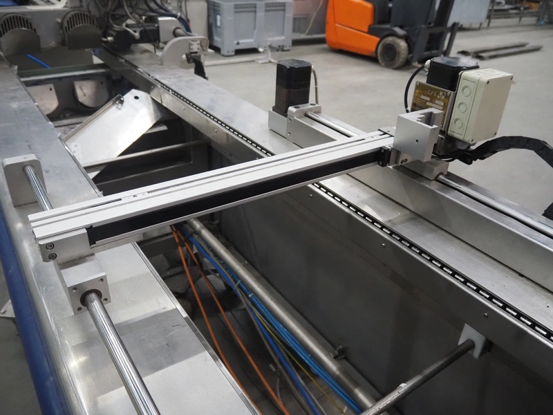 CFS thermoformer, type: EVOLUTION, serial number: 4046100391, year of construction: 2008, 400 V, 3 Ph, 50 Hz, 20 A, 10 kW, film width: 350 mm, dyes: (4x) 300 mm x 90 mm, index: 470 mm, belt width: 430 mm, label width: 85 mm, plastic belt, belt width: 420 mm, total dimensions: 13400 mm x 1300 mm x 2160 mm. Including 5 pallets with machine parts, amoung others: dyes: (8x) 200 mm x 65 mm, (3x) 255 mm x 130 mm. Transport rollies not included.