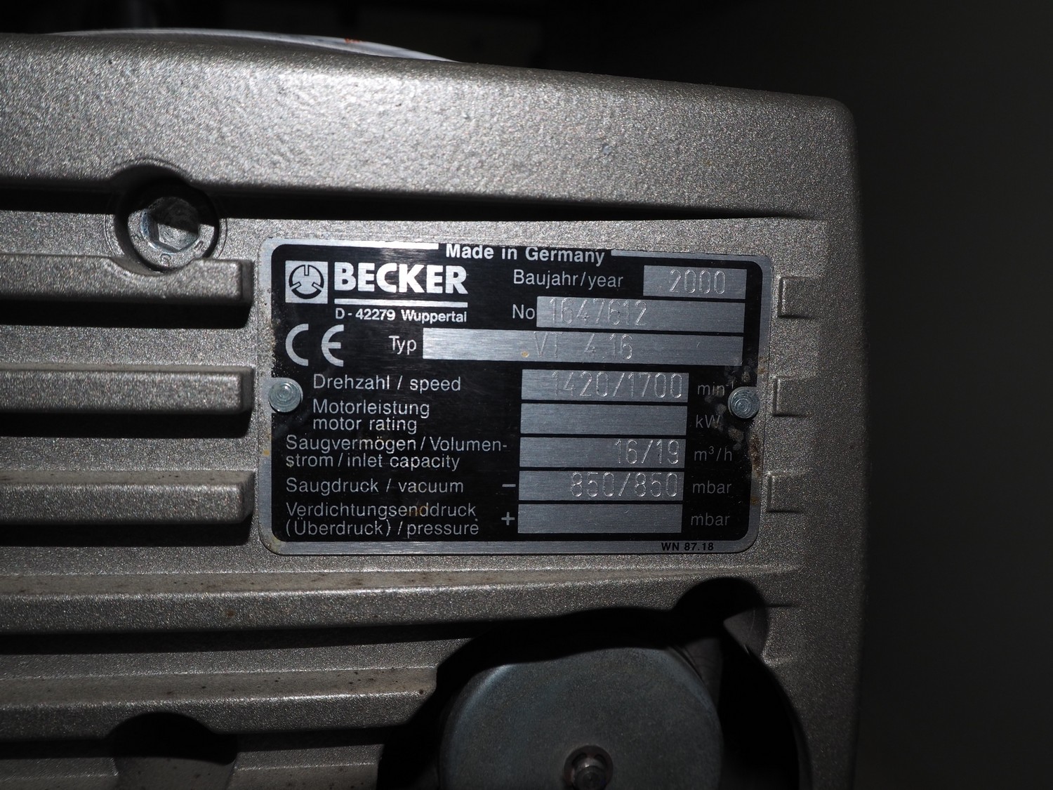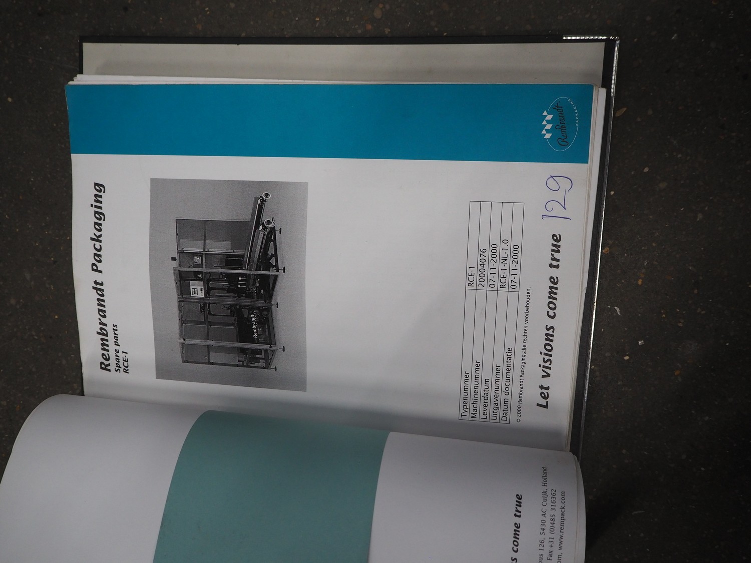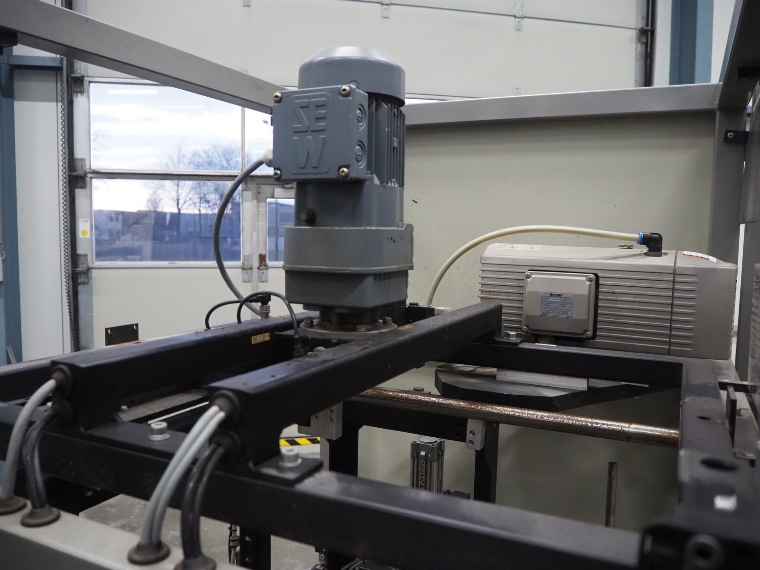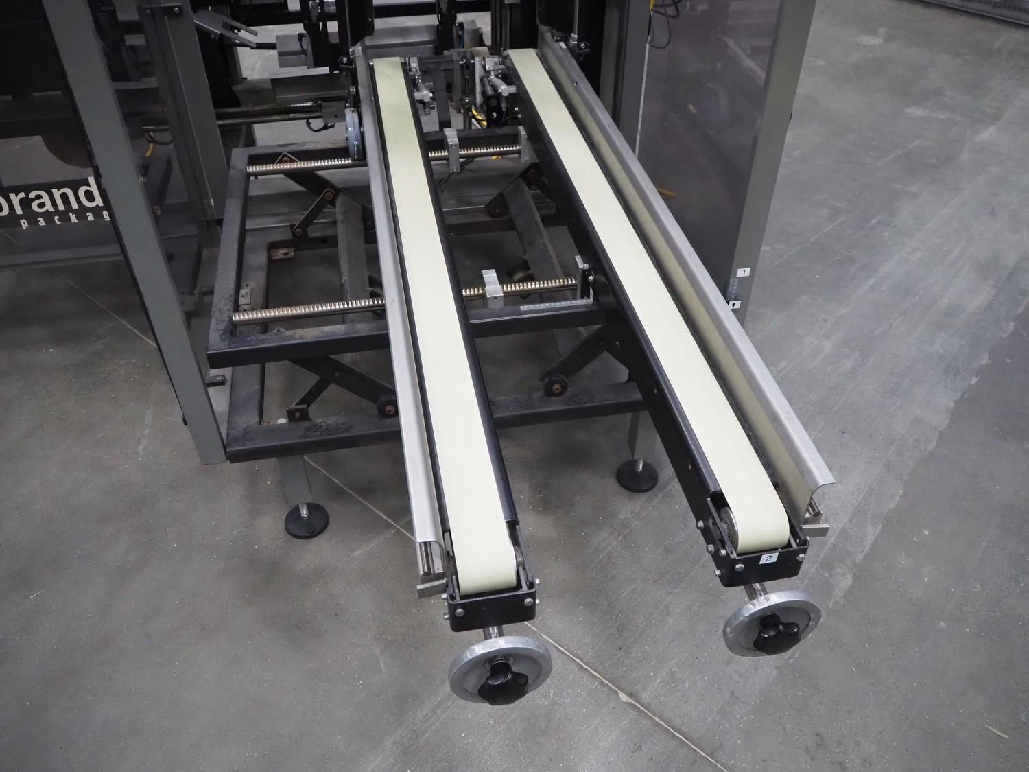 Rembrandt Packaging carton erector, type: RCE-1-T, serial number: 20004076, year of construction: 2000, 400 V, 3 Ph, 50 Hz, 1.6 kW, plastic belts, belt width: 70 mm and 100 mm, working width: 445 mm and 205 mm, clearance: 625 mm x 420 mm, Becker vacuum pump, type: VT 4.16, 16/19 m³ per hour, total dimensions: 2350 mm x 2420 mm x 2000 mm.