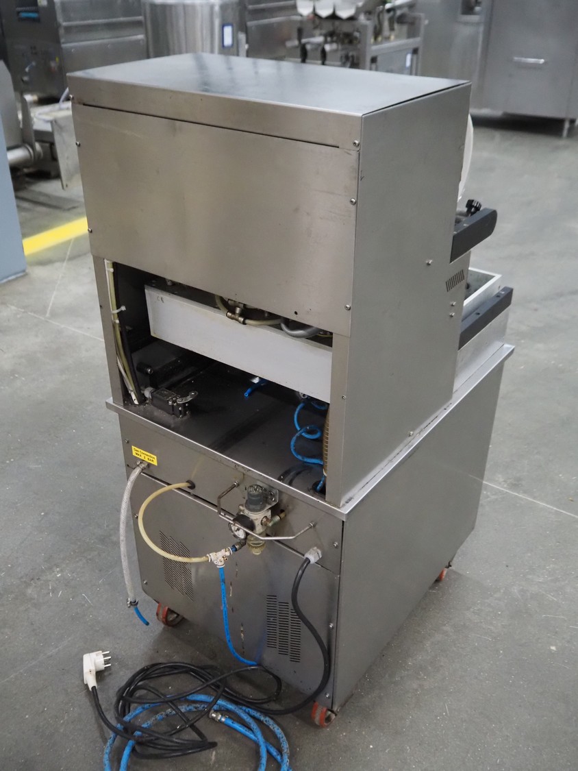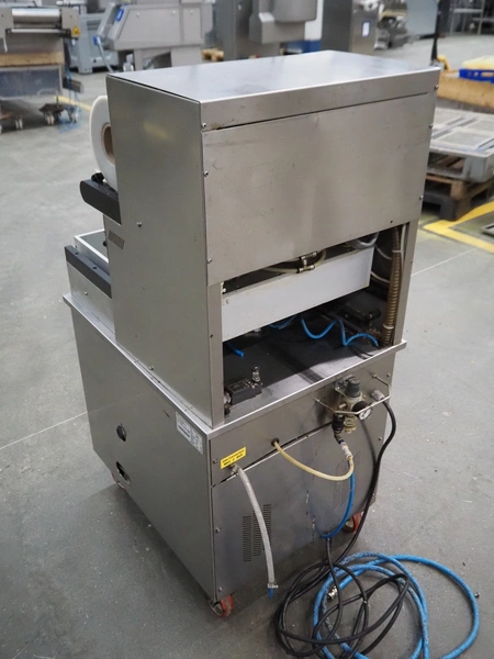 HFE vacuum systems bv mobile traysealer, type: TPS COMPACT XL, serial number: 10111, year of construction: 2010, 400 V, 3 Ph, 50 Hz, 5 A, weight: 150 kg, film width: 420 mm, dye: 440 mm x 330 mm, total dimensions: 800 mm x 600 mm x 1300 mm.