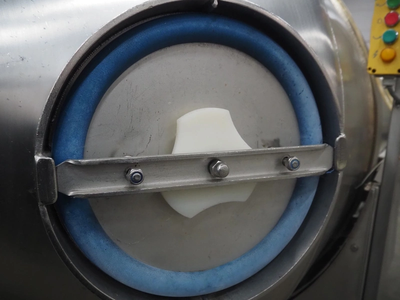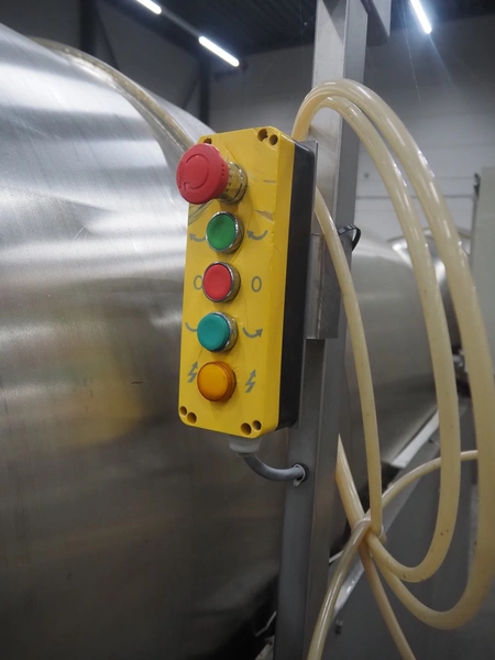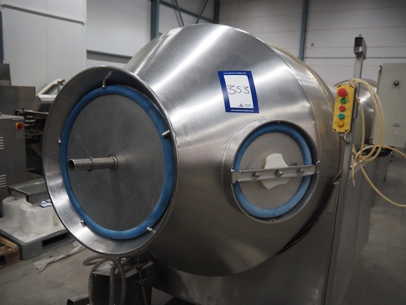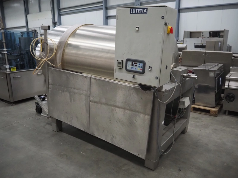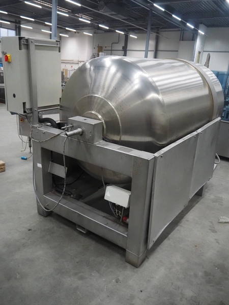 Lutetia vacuum tumbler, type: 4, serial number: 16555, year of construction: 2004, 400 V, 50 Hz, volume: 1800 liter, Busch vacuum pump, type: RA 0040 F 503, capacity: 40 m³ per hour, dimensions: 3300 mm x 1500 mm x 2100 mm.