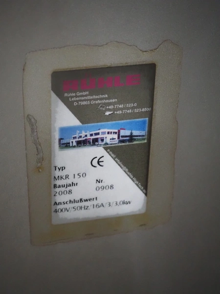 Rühle mobile tumbler, type: MKR 150, number: 0908, year of construction: 2008, 400 V, 50 Hz, 16 A, 3 kW, volume: 150 liter, dimensions: 1200 mm x 950 mm x 1700 mm.