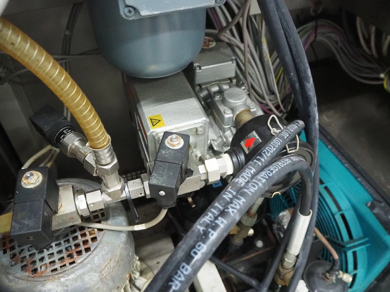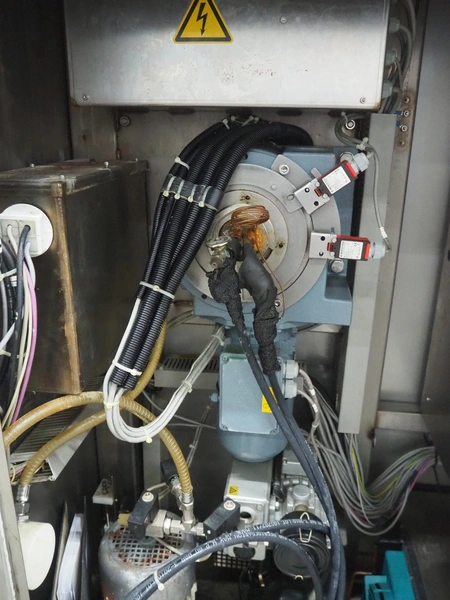 Rühle cooled vacuum tumbler, type: MGR 400, number: 0049, year of construction: 2011, 400 V, 3 Ph, 50 Hz, 32 A, 12 kW, Busch vacuum pump, type: KC 0016 E 3Z0, capacity: 16 m³ per hour, dimensions: 2100 mm x 2100 mm x 1950 mm.