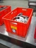 Plastic crate with Handtmann parts for vacuum filling machine, number: 860673, dimensions: 600 mm x 400 mm x 300 mm.