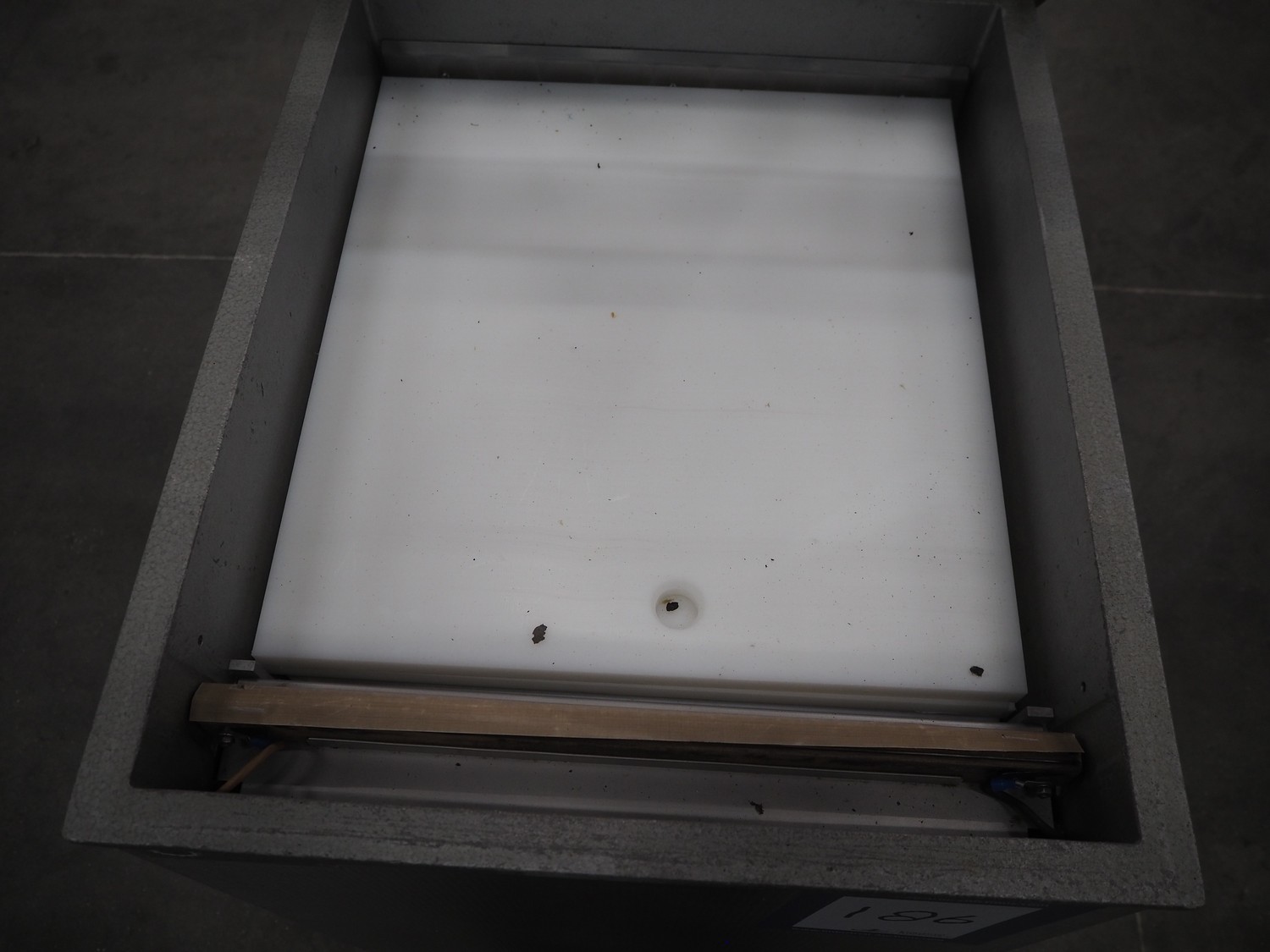 Mobile vacuum machine, seal length: 450 mm, chamber dimensions: 850 mm x 460 mm, vacuum pump, total dimensions: 950 mm x 570 mm x 910 mm.