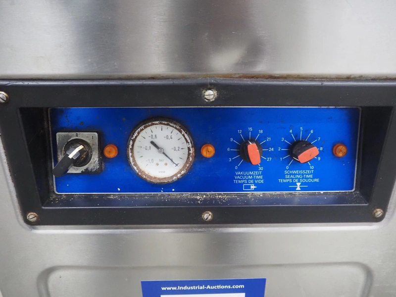 Komet mobile vacuum machine, type: I300, machine number: 269 94 88, 220/380 V, 16 A, 1.1 kW, seal length: 400 mm, chamber dimensions: 400 mm x 540 mm, total dimensions: 490 mm x 700 mm x 950 mm.