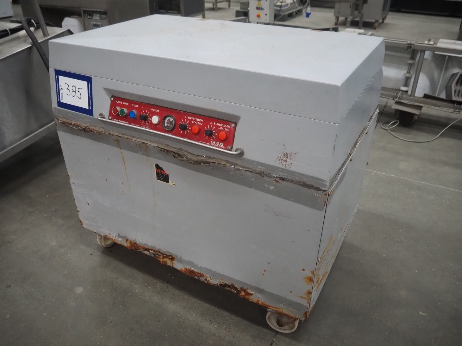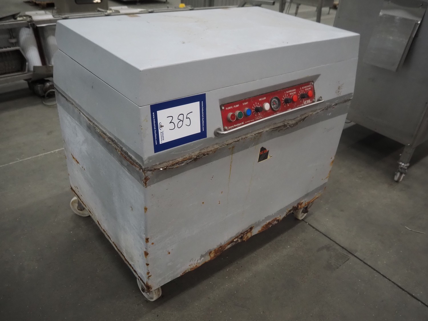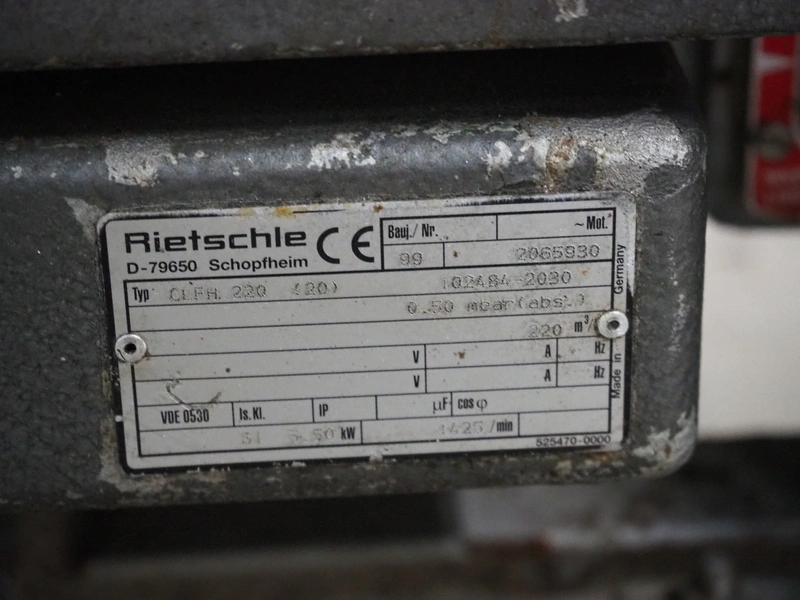 Inauen VC999 mobile vacuum machine, with Rietschle vacuum pump, type: CLFH 220 (20), dimensions: 1100 mm x 800 mm x 1020 mm. Technical condition unknown.