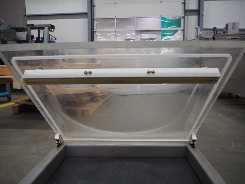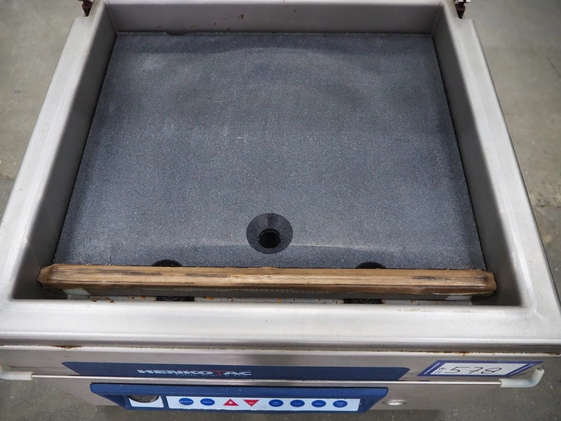 Henkovac vacuum machine, type: E-152, number: 20012075, year of construction: 2001, 230 V, 6 A, 1.3 kW, seal length: 440 mm, dimensions chamber: 450 mm x 370 mm x 70 mm, total dimensions: 450 mm x 500 mm x 550 mm.