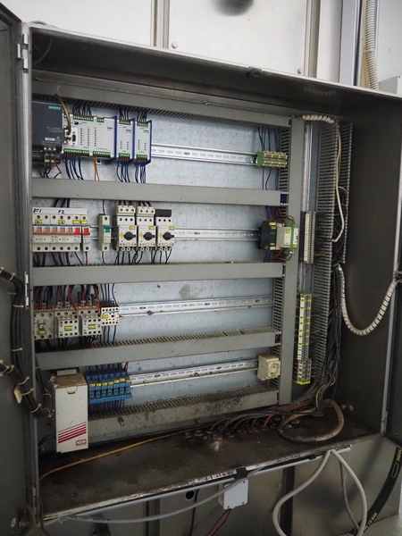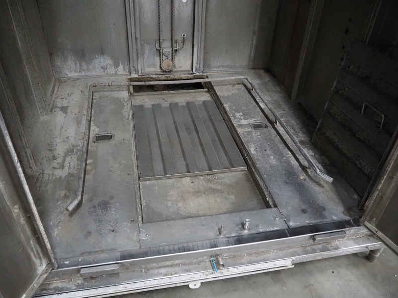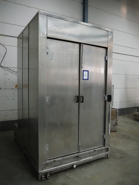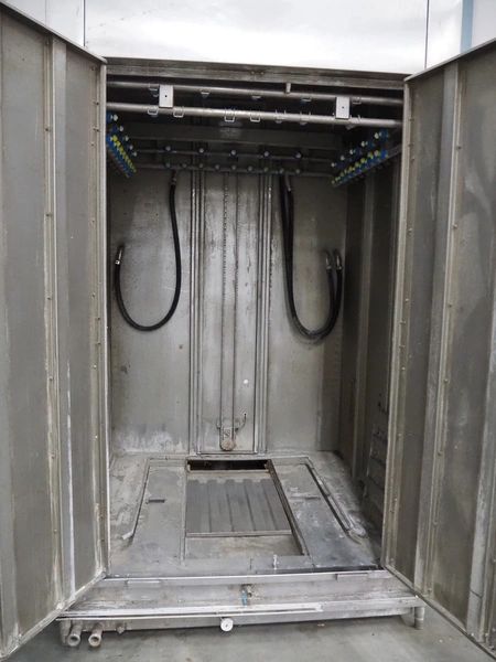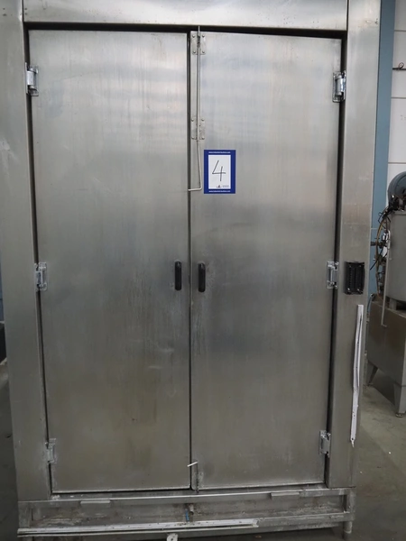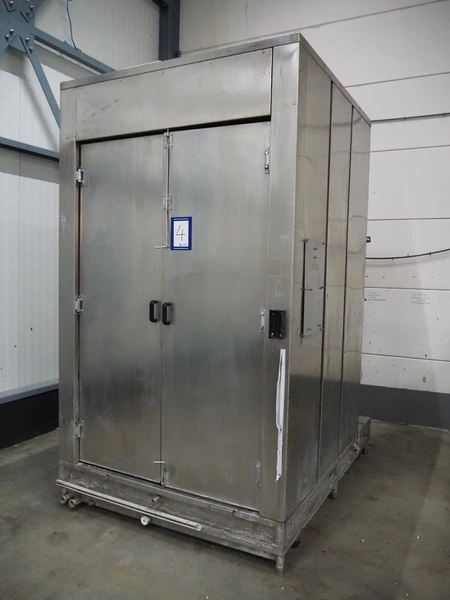 Dorit washing machine for smoke trolley, type: KRW 1, serial number: 20.022, 400 V, 3 Ph, 50 Hz, 6.5 kW, dimensions inside: 1150 mm x 1080 mm x 2150 mm, total dimensions: 2250 mm x 1700 mm x 2950 mm. Missing pump.