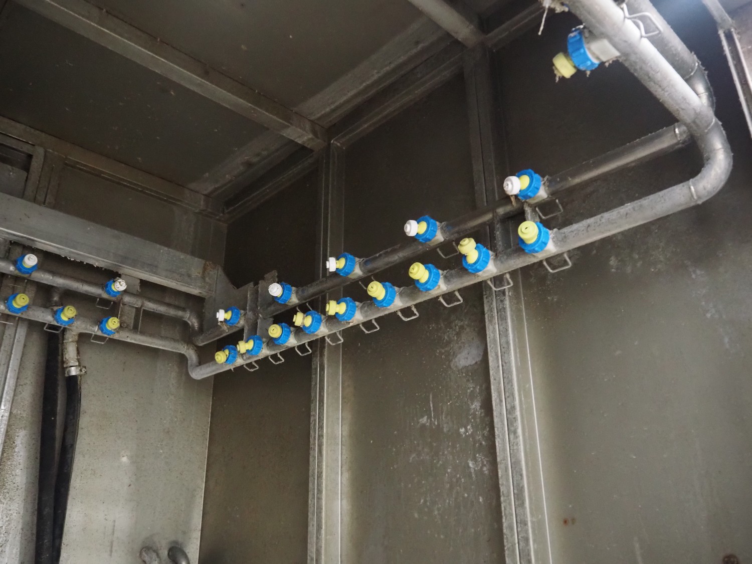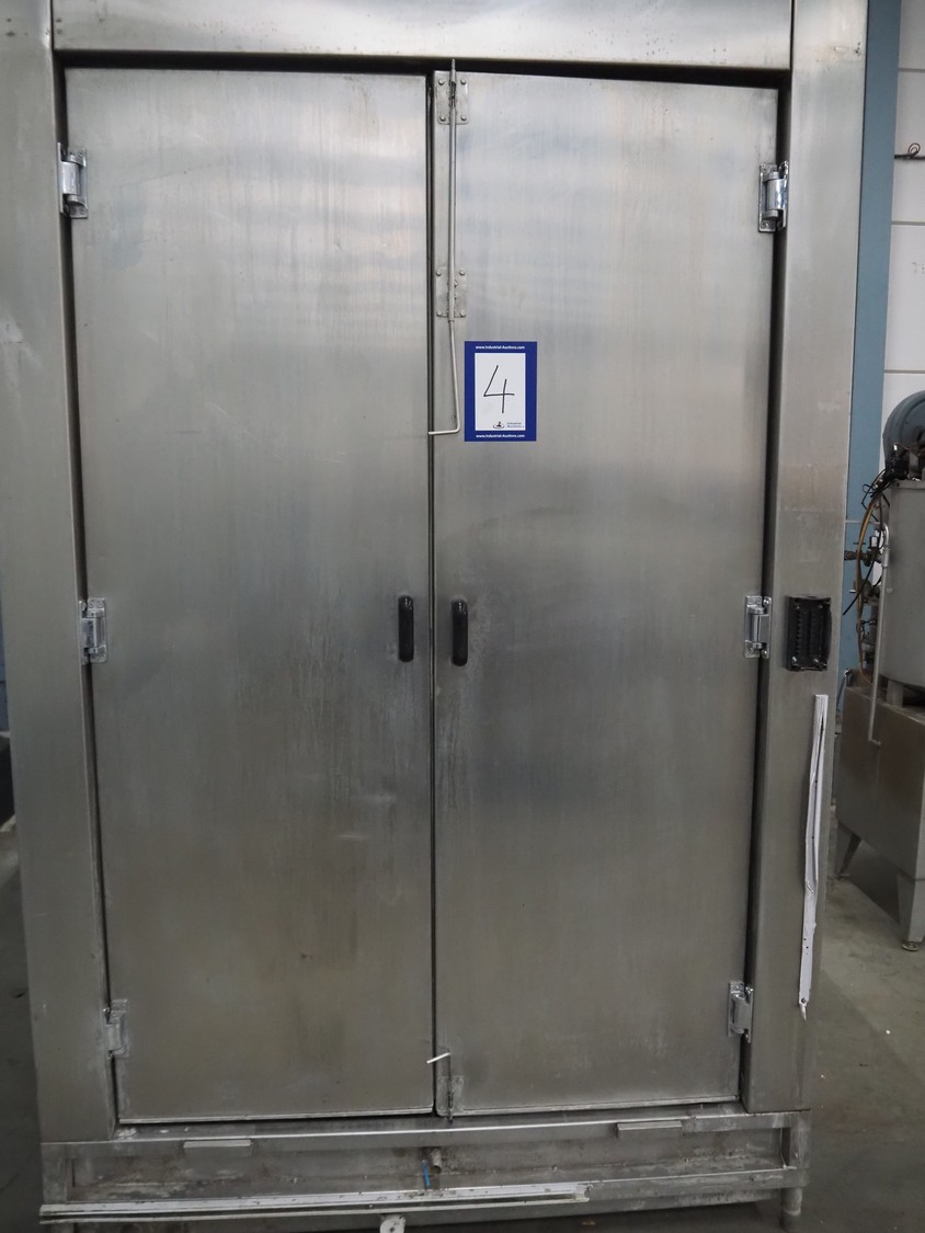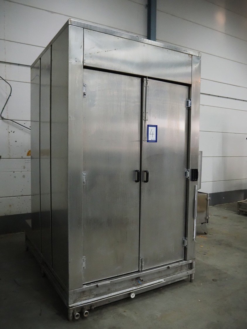 Dorit washing machine for smoke trolley, type: KRW 1, serial number: 20.022, 400 V, 3 Ph, 50 Hz, 6.5 kW, dimensions inside: 1150 mm x 1080 mm x 2150 mm, total dimensions: 2250 mm x 1700 mm x 2950 mm. Incomplete.