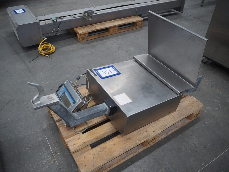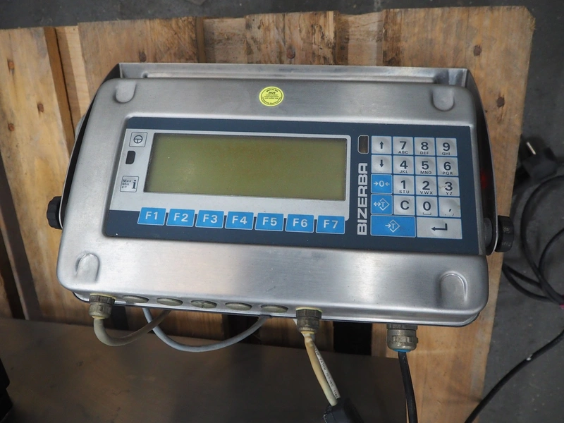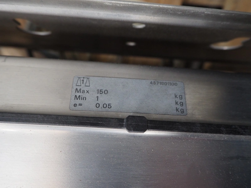 Bizerba hook weighing scale, type: ST, number: 11008533, 240 V, 50/60 Hz, 0.25 A, maximum weight: 150 kg, minimum weight: 1 kg, e= 0.05 kg, dimensions: 600 mm x 700 mm x 1300 mm.