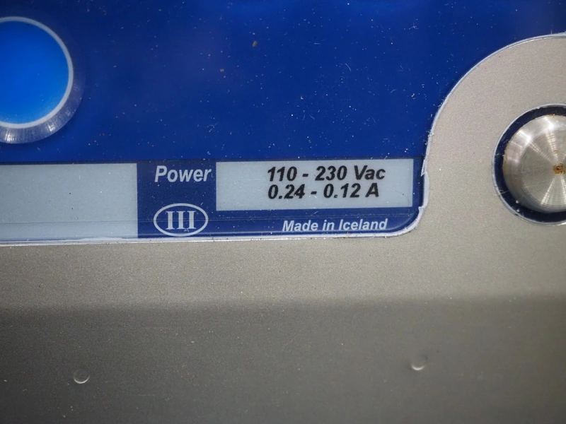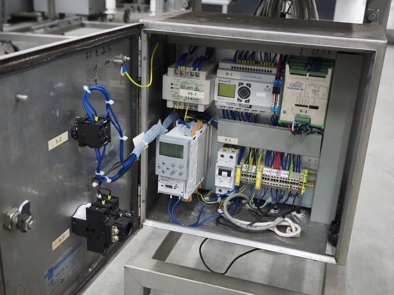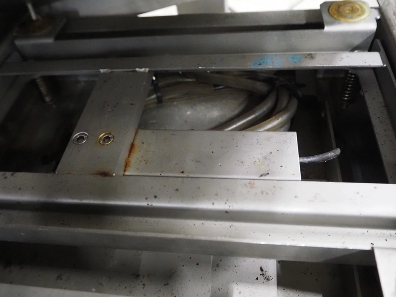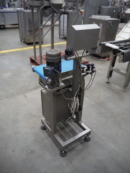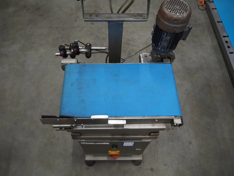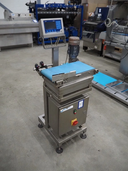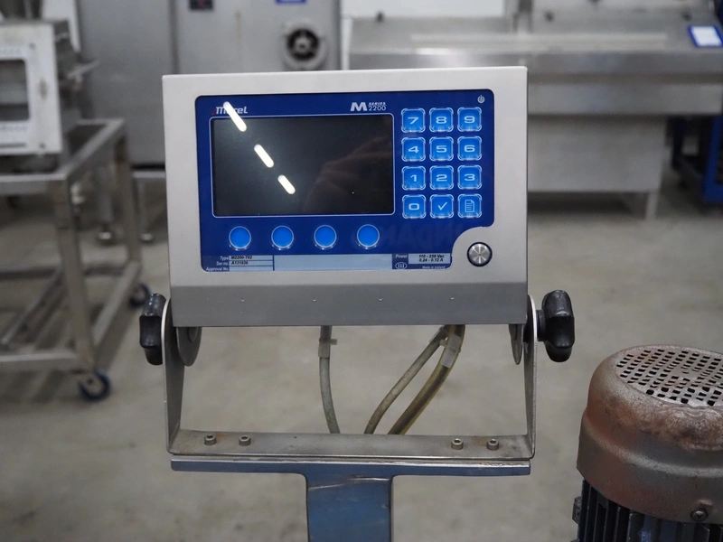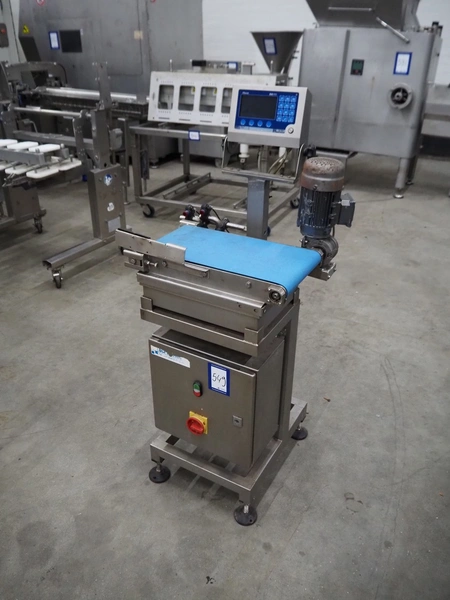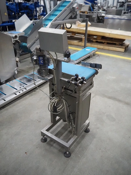 Marel weighing scale, type: M2200-T02, serial number: A131936, 110-230 V, 0.24-0.12 A, plastic belt, belt width: 250 mm, total dimensions: 550 mm x 450 mm x 1200 mm.