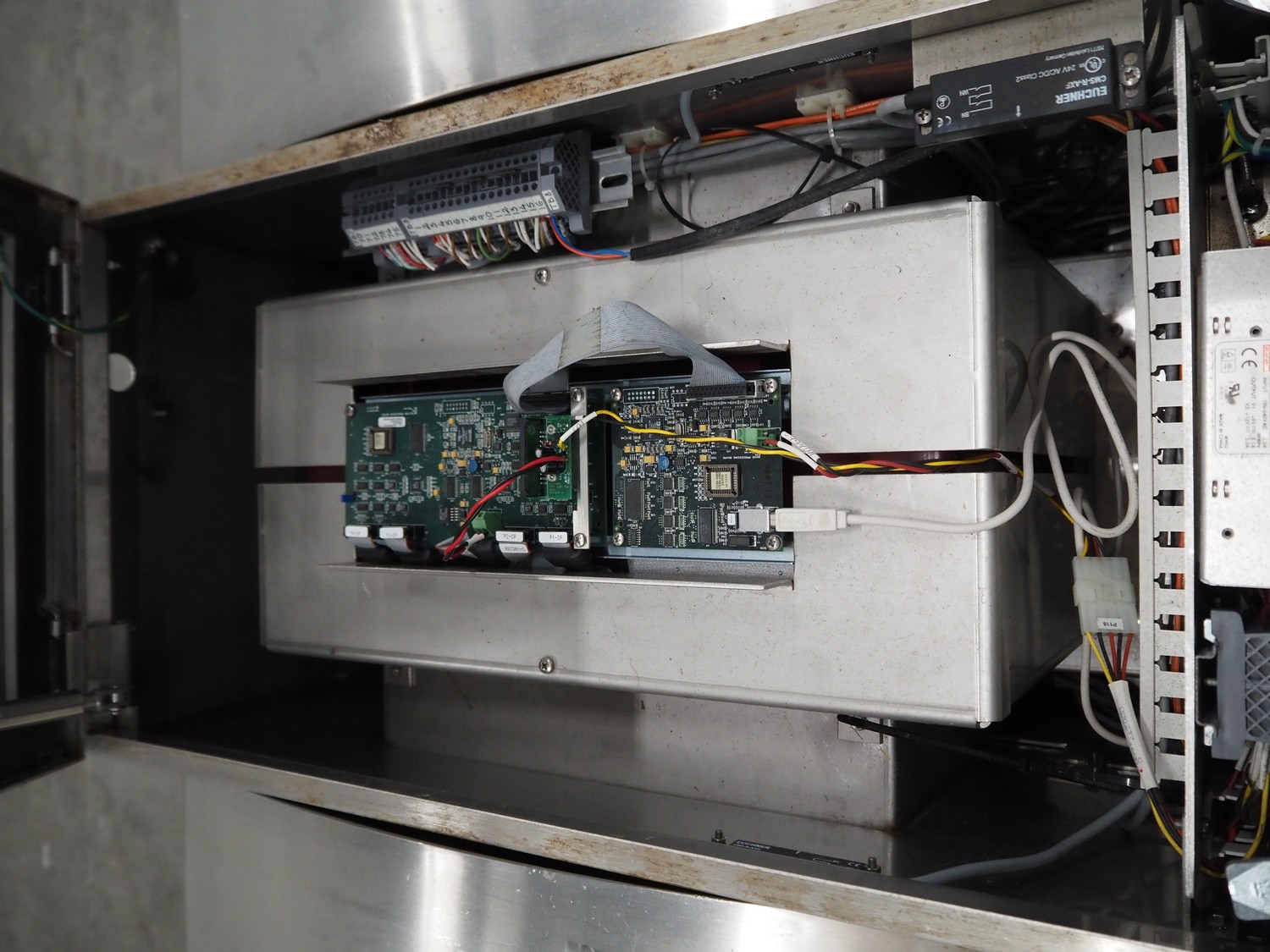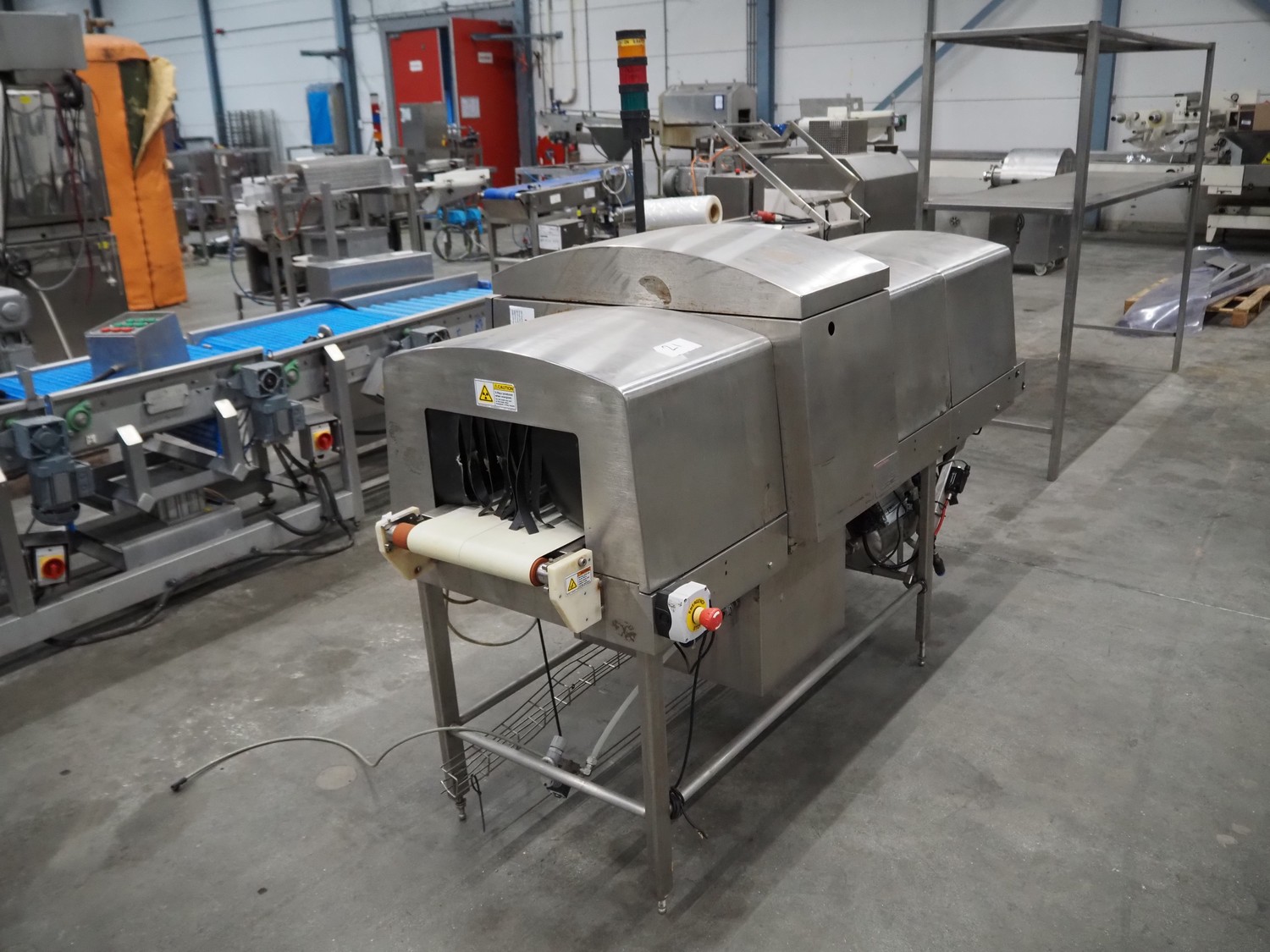 Thermo Fischer x-ray scanner with rejecter, type: EZX 420, serial number: 08243260, year of construction: JUNE 2008, 100-240 V, 50//60 Hz, 7.5-15 A, plastic belt, belt width: 310 mm, clearance: 380 mm x 190 mm, total dimensions: 2000 mm x 1100 mm x 1730 mm.