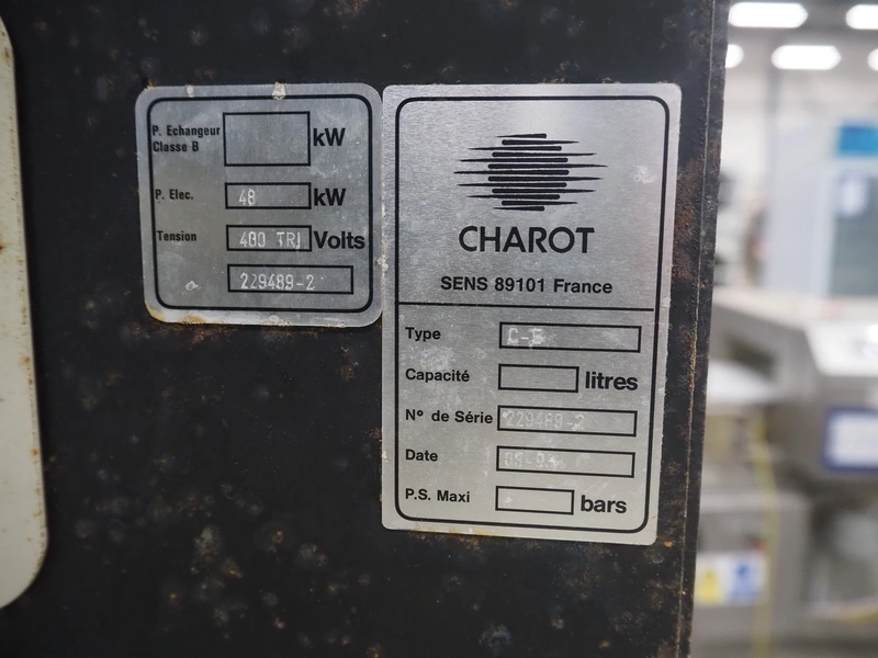 Charot boiler, serial number: 229-98-2, year of construction: 09-93, 400 V, 48 kW, dimensions: 780 mm x 600 mm x 1800 mm.