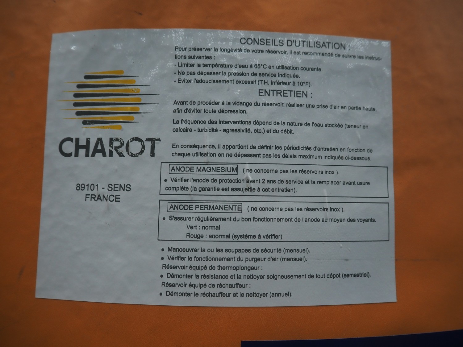 Charot boiler vessel, dimensions: Ø 900 mm x 2500 mm.