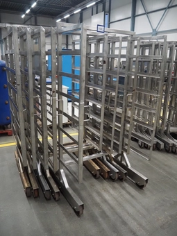 18 s/s smoke trolleys, dimensions each trolley: 1020 mm x 1000 mm x 1960 mm.