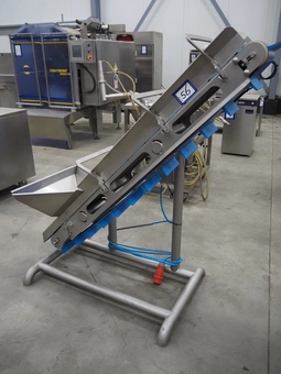 Elevating belt with dividers, s/s frame, plastic belt, belt width: 210 mm, elevating height: 1400 mm, distance between dividers: 14…12 bidsLot is closed -