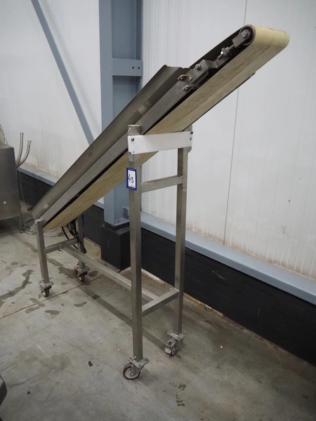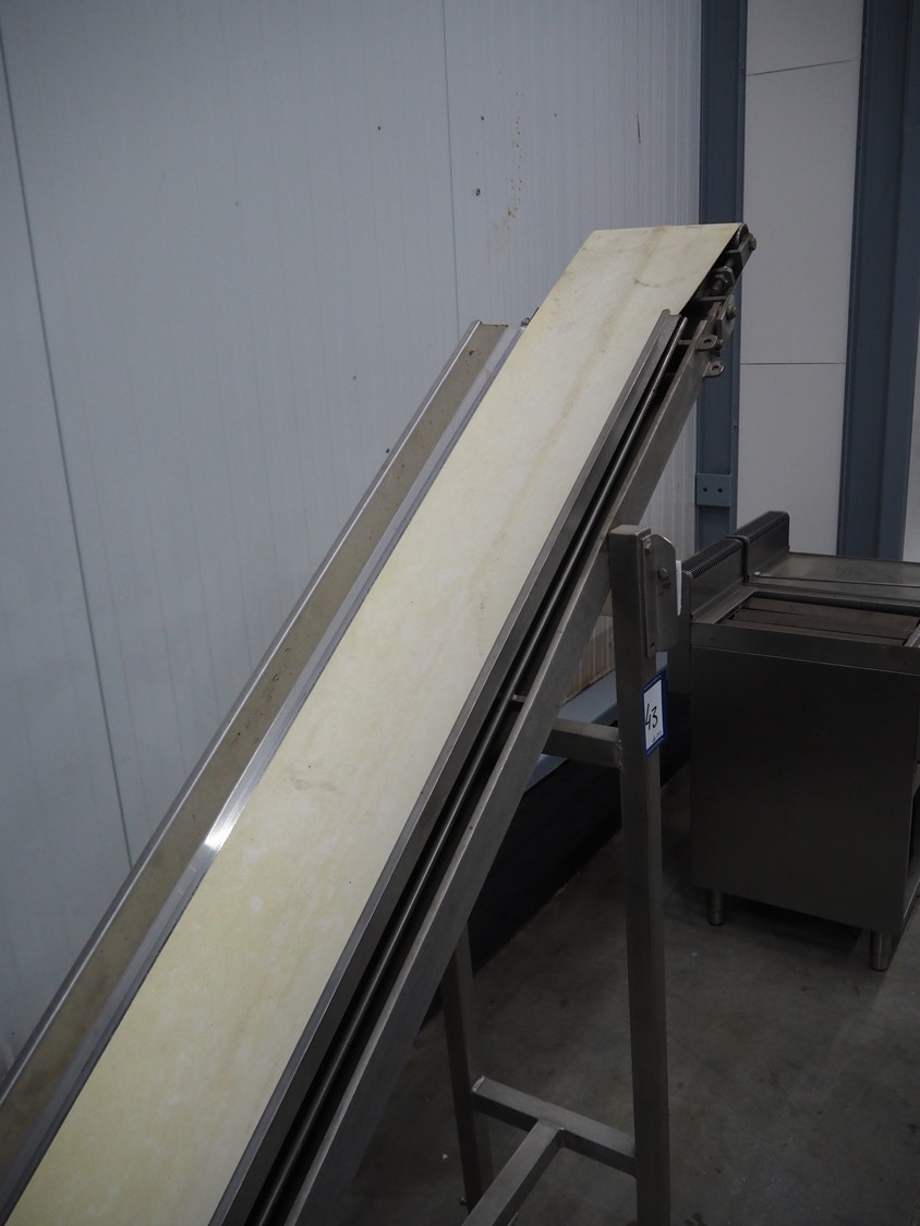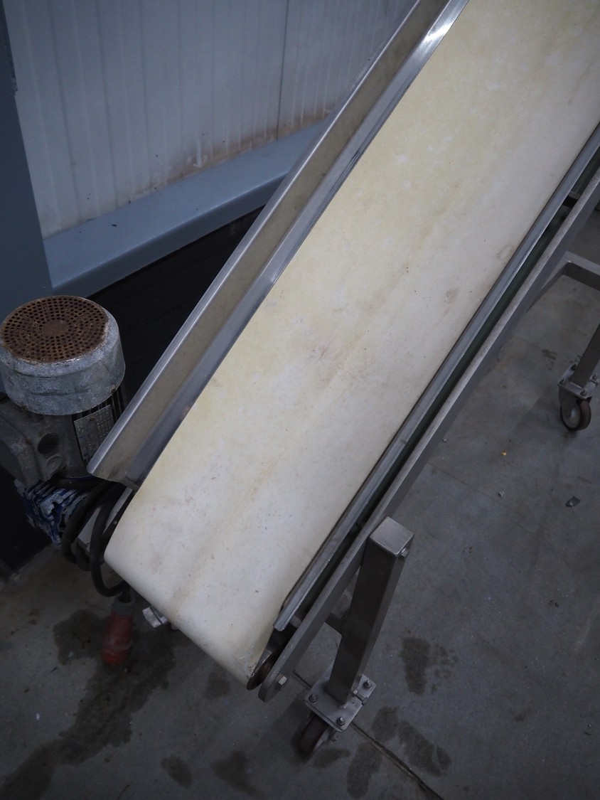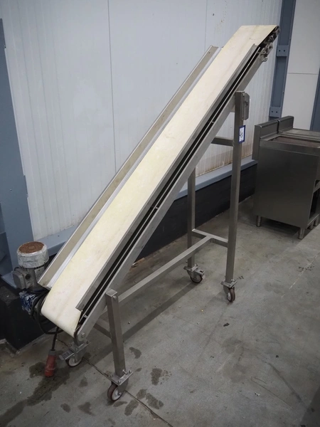 Mobile elevating belt, s/s frame, plastic belt, belt width: 250 mm, elevating height: 1700 mm, total dimensions: 1800 mm x 450 mm x 1750 mm.