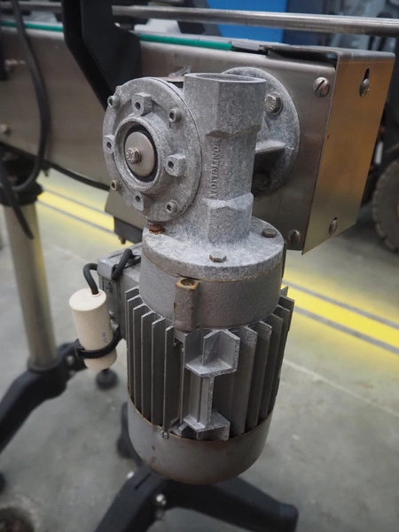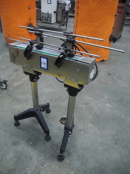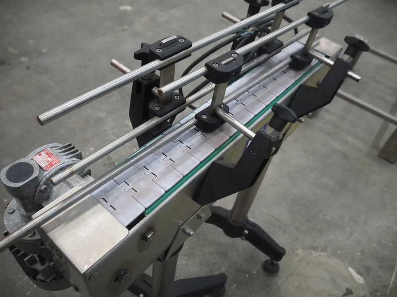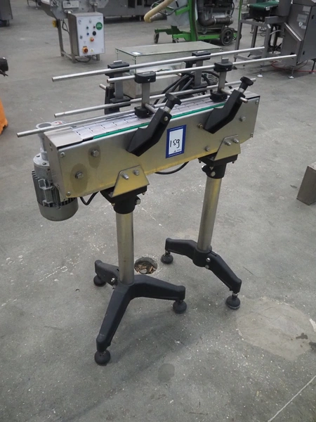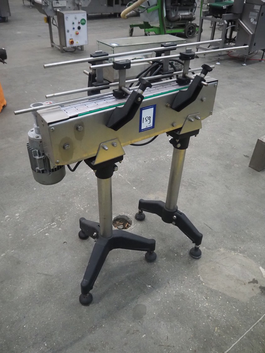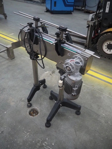 Transport belt, s/s frame, plastic belt, belt width: 80 mm, total dimensions: 1000 mm x 350 mm x 1100 mm.