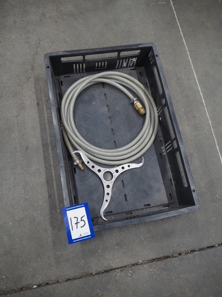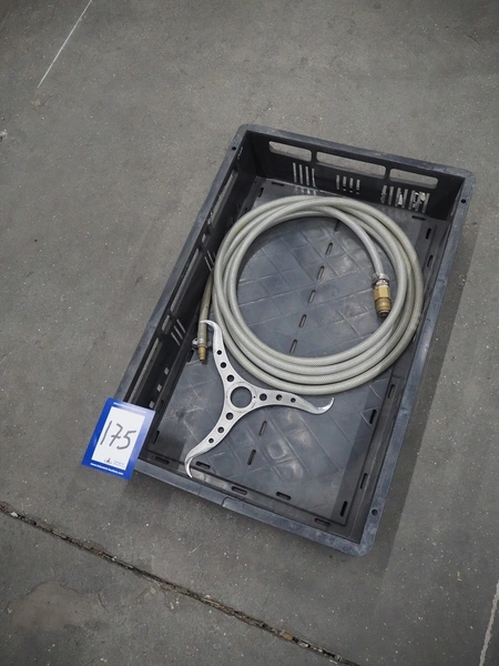 Plastic crate plastic air hose and s/s knife for sausage cutter.