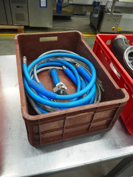 Plastic crate with parts for Bettcher Industries Inc. Trimmer, dimensions: 600 mm x 400 mm x 200 mm.