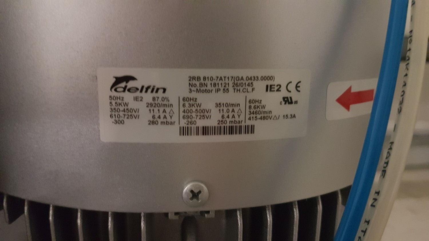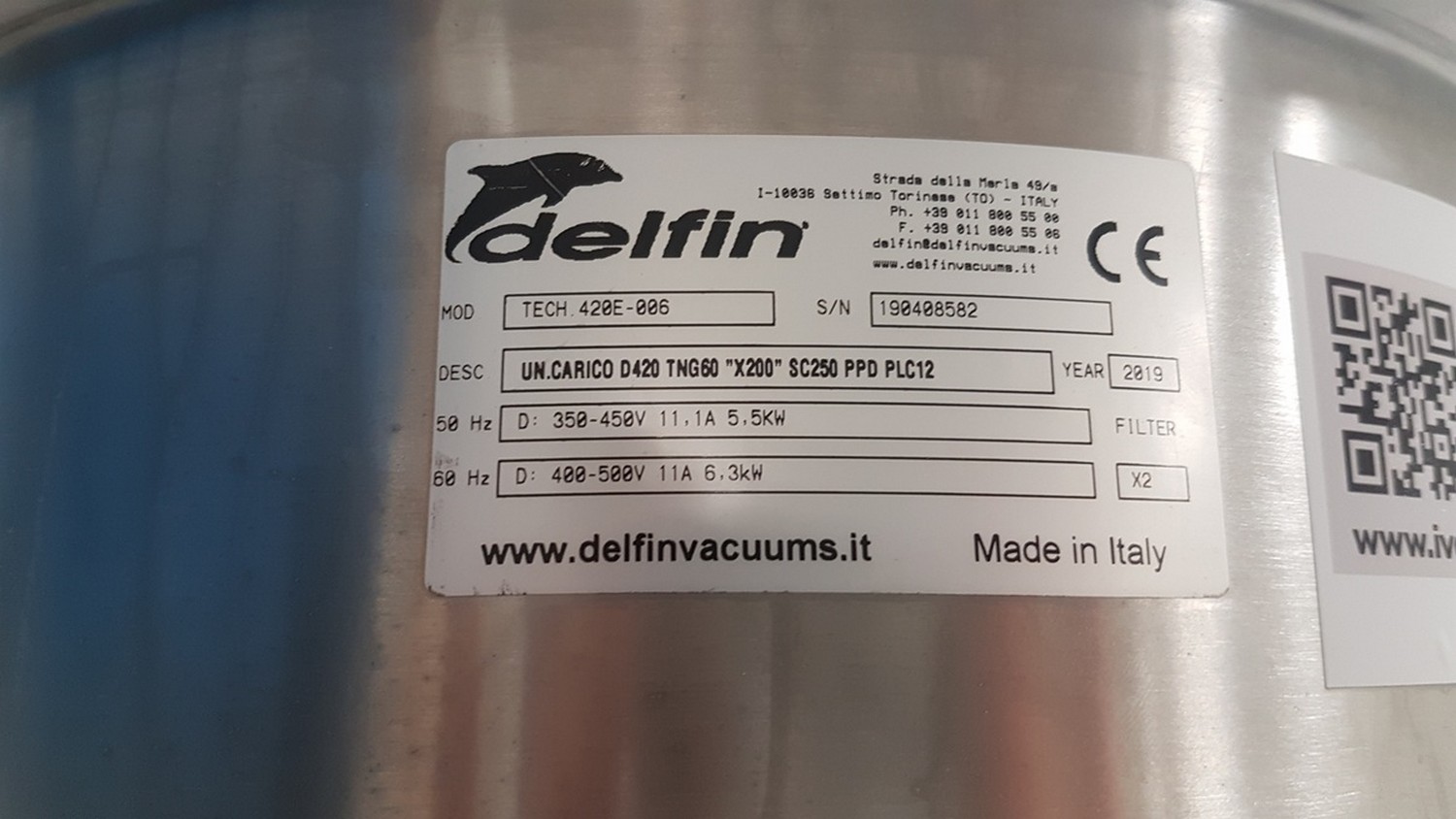 Delfin vacuum transport system for grated cheese, model: TECH.420E 60 250, serial number: 19040852, year of construction: 2019, density: 0.6 - 0.8 kg/dm³, capacity: 600 kg/h.