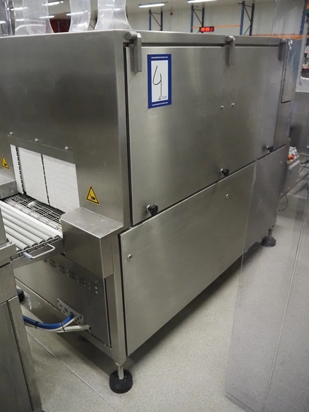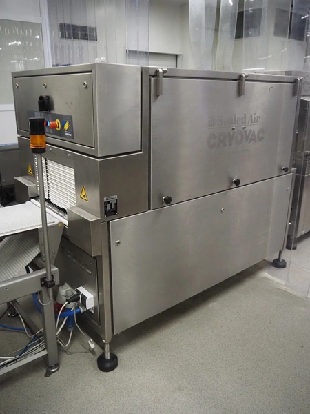 Cryovac drying tunnel, model: WR81-600, machine number: SN01206, year of construction: 2015, 400 V, 3 Ph, 50/60 Hz, 46 A, 17.5 kW, s/s mesh belt, belt width: 550, clearance: 650 mm x 250 mm, total dimensions: 2030 mm x 1100 mm x 1660 mm.