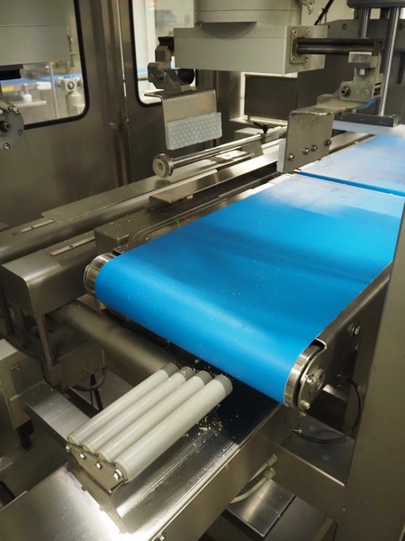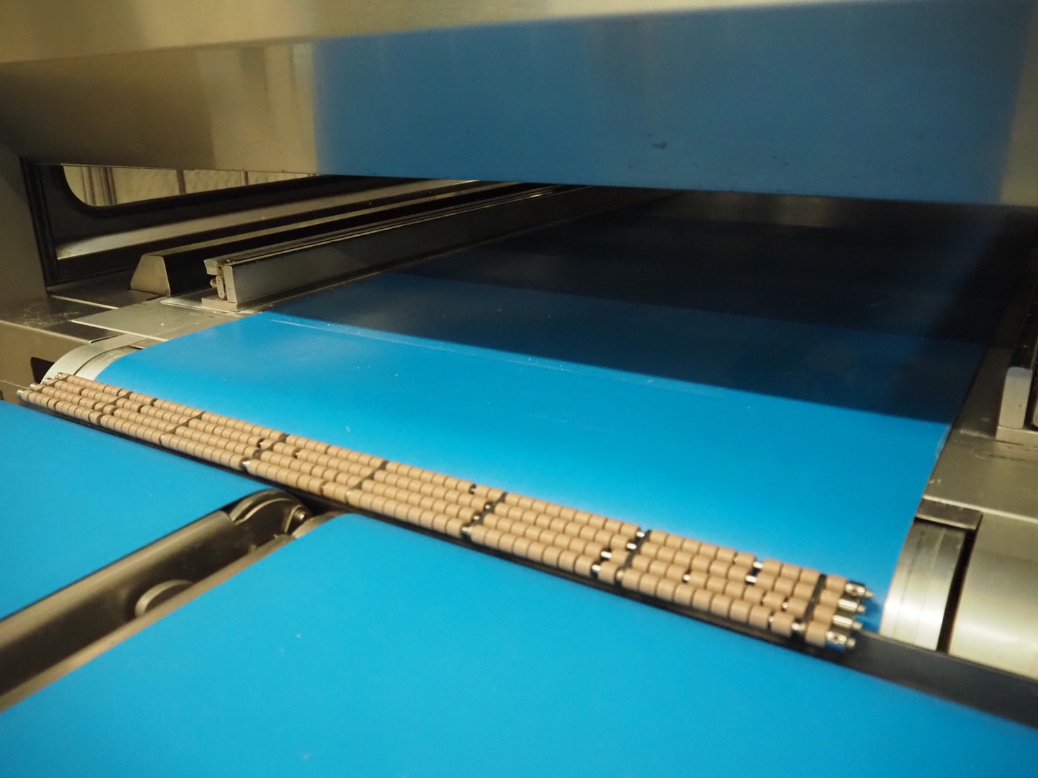 • Outfeed belt, plastic belt, belt width: 750 mm, total dimensions: 1970 mm x 1020 mm x 1020 mm;