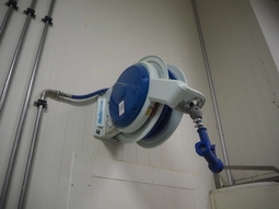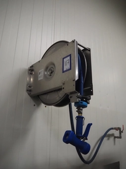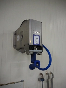 S/s hose reel with hose and pistol, dimensions: 430 mm x 230 mm x 420 mm.1 bidLot is closed -